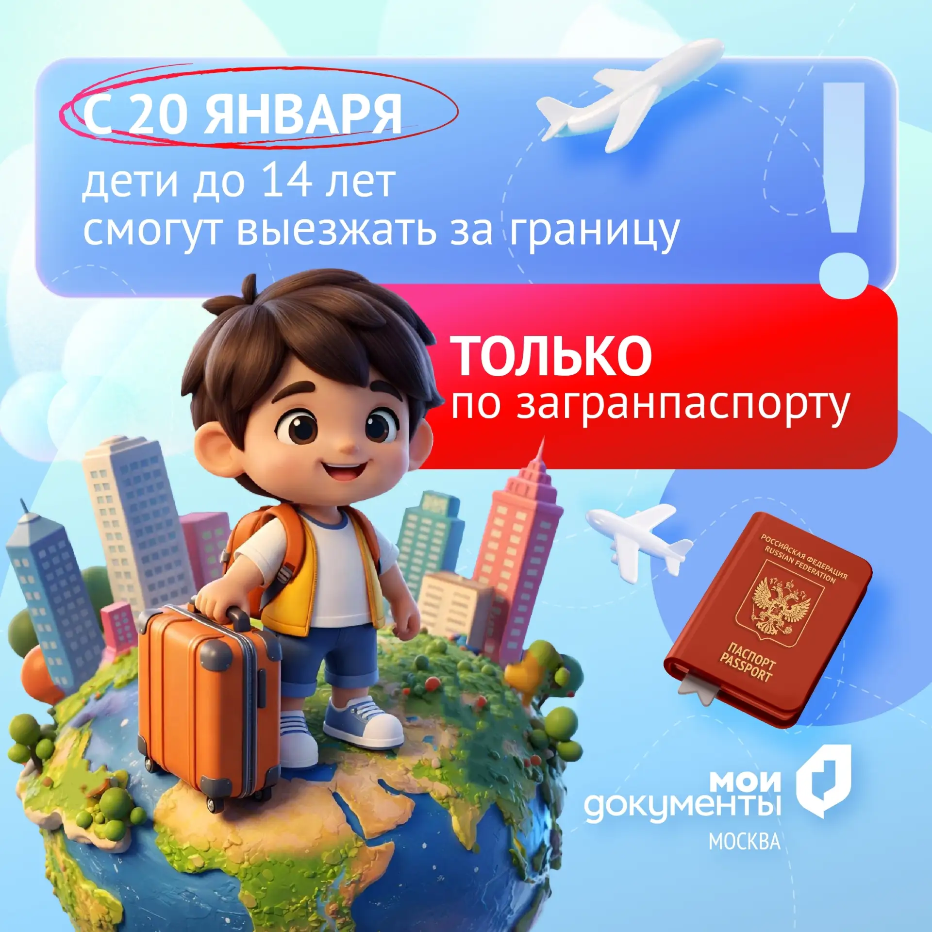 С 20 января дети до 14 лет смогут выезжать за границу только по собственному загранпаспорту