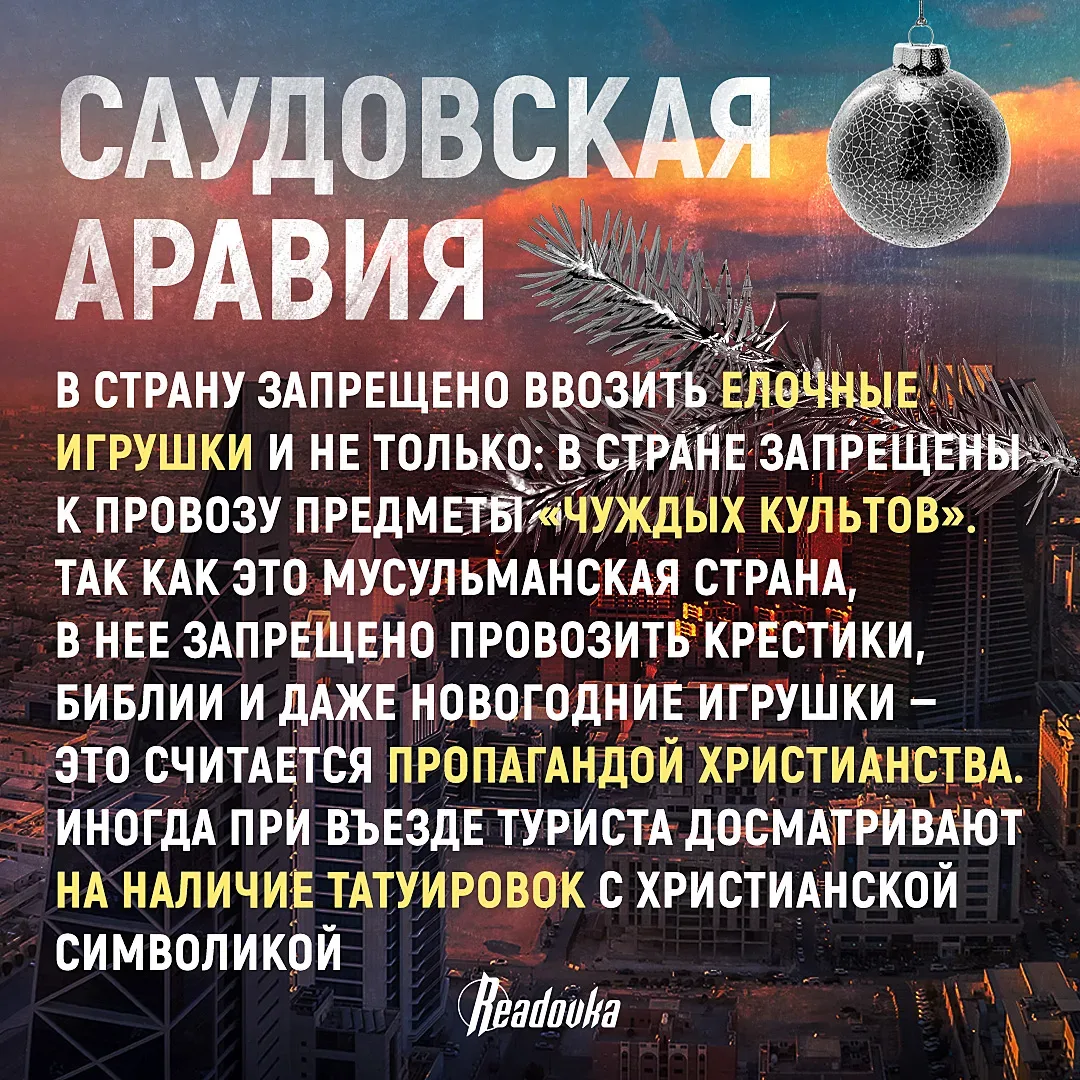 И такие требования при въезде в страну — далеко не редкость. Куда нельзя провозить елочные игрушки, почему стоит покупать настоящие Rolex — на наших карточках.