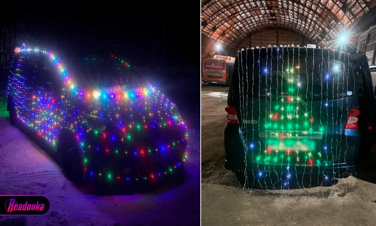 Жительница Новосибирска устроила яркий перфоманс и украсила свою машину гирляндами с крыши до колес. «Передвижной Новый год» сверкает на улицах города и радует не только пассажиров, но и окружающих. Автолюбительница потратила 90 м гирлянды, которая может светиться как елка и даже как российский триколор. К слову, девушка постоянно устраивает необычные акции со своей машиной: летом она преобразила ее в бассейн для уточек, а в прошлом году нарядила салон и таксовала в новогоднем костюме.