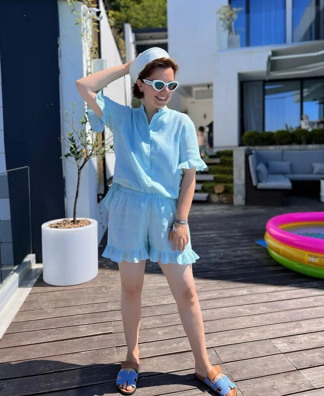 Татьяна всегда была, как говорят, «девушкой с характером». Она не скрывает, что ей важен стиль, важен внешний вид. В её гардеробе нет места случайным вещам — всё подобрано с тщательностью художника, который рисует автопортрет. Шапочка Garin, очки Dior, сандалии Hermes… Каждая деталь говорит сама за себя. И, конечно, это не остаётся незамеченным.