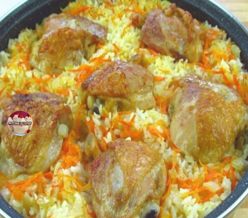 💡 Совет: если не перемешивать рис во время запекания, он получится особенно рассыпчатым и впитает весь куриный вкус — именно за это его и любят дома.