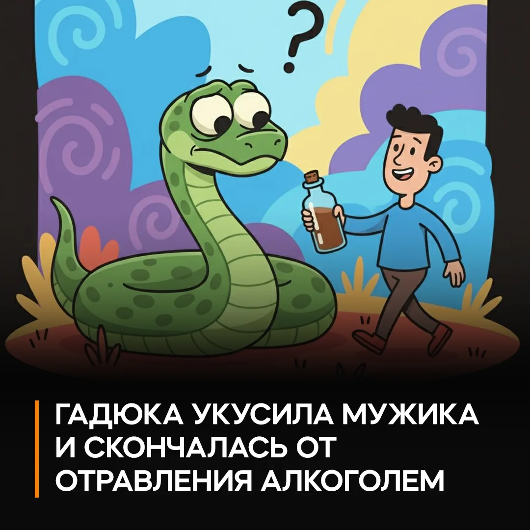 Произошёл курьёзный случай: ядовитая гадюка укусила туриста, но вскоре сама погибла. Как выяснилось, причина смерти змеи — чрезмерно высокое содержание алкоголя в крови укушенного (5,1 г/кг), с которым организм пресмыкающегося не справился. При этом на самого туриста яд не подействовал — видимо, благодаря высокой степени «пропитки» алкоголем, который нейтрализовал яд.