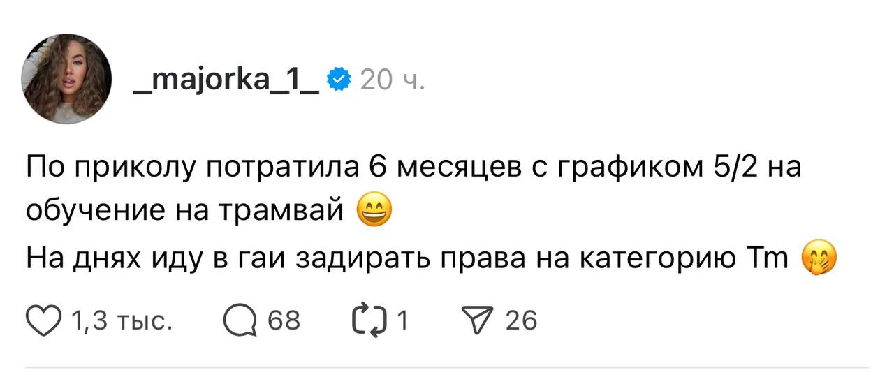 Раньше хотели в бьюти, теперь — за штурвал электротранспорта. Видимо, в кабине трамвая и спокойнее, и романтики больше.