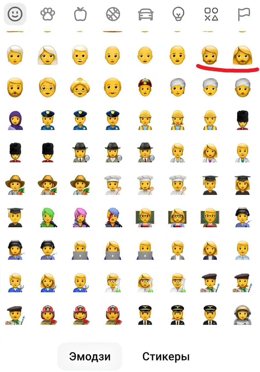 Видимо, IT-разработчики просто перенесли все имеющиеся смайлики из ТГ, но забыли, что в российском мессенджере не должно быть бородатых женщин (ЛГБТ*-эмодзи).