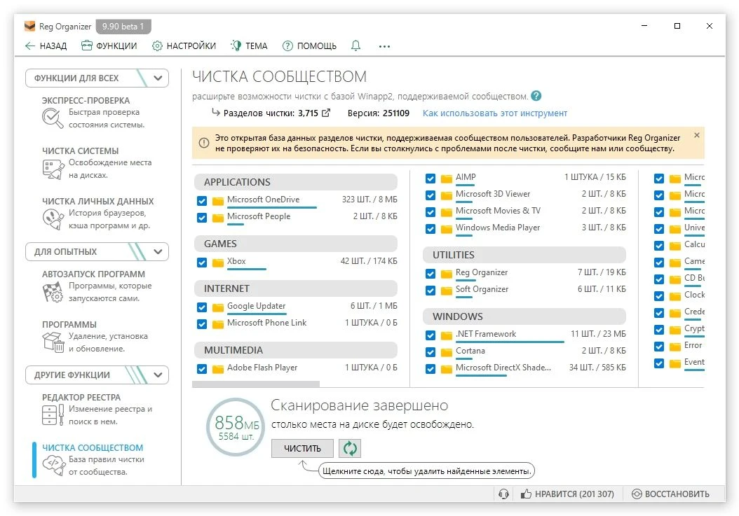 Мы знаем, как вы ждали обновлений, и приложили все усилия, чтобы успеть до конца этого года и праздничных каникул выпустить новую бета-версию. И она того стоит, потому что мы представляем вам долгожданный и мощный инструмент «Чистка сообществом» на базе Winapp2.