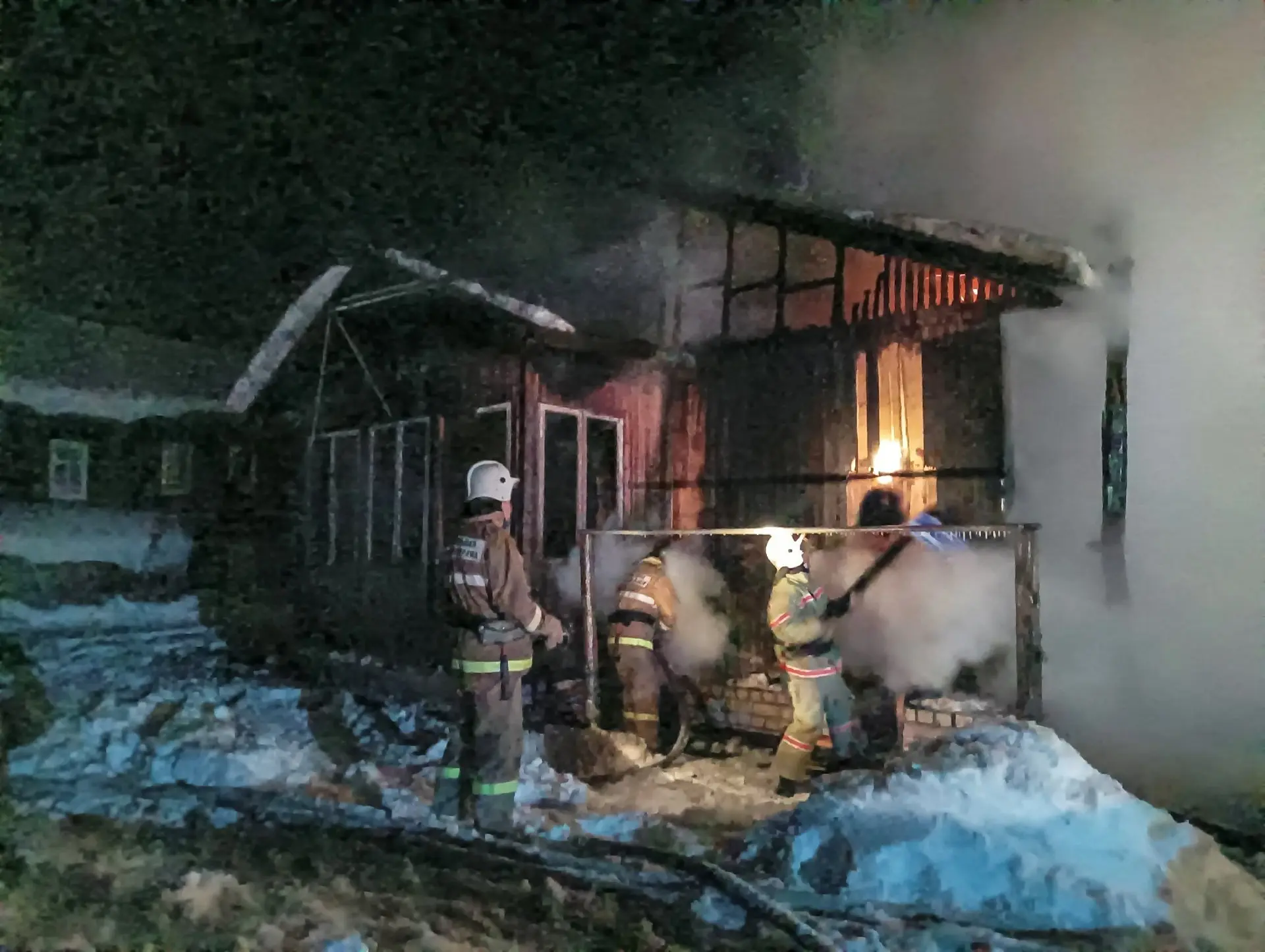 К моменту прибытия пожарных Агентства ГПС и ГЗ строение было полностью охвачено огнём. Помогали потушить пожар три пожарных-добровольцев из деревни Монастырская Пашня.