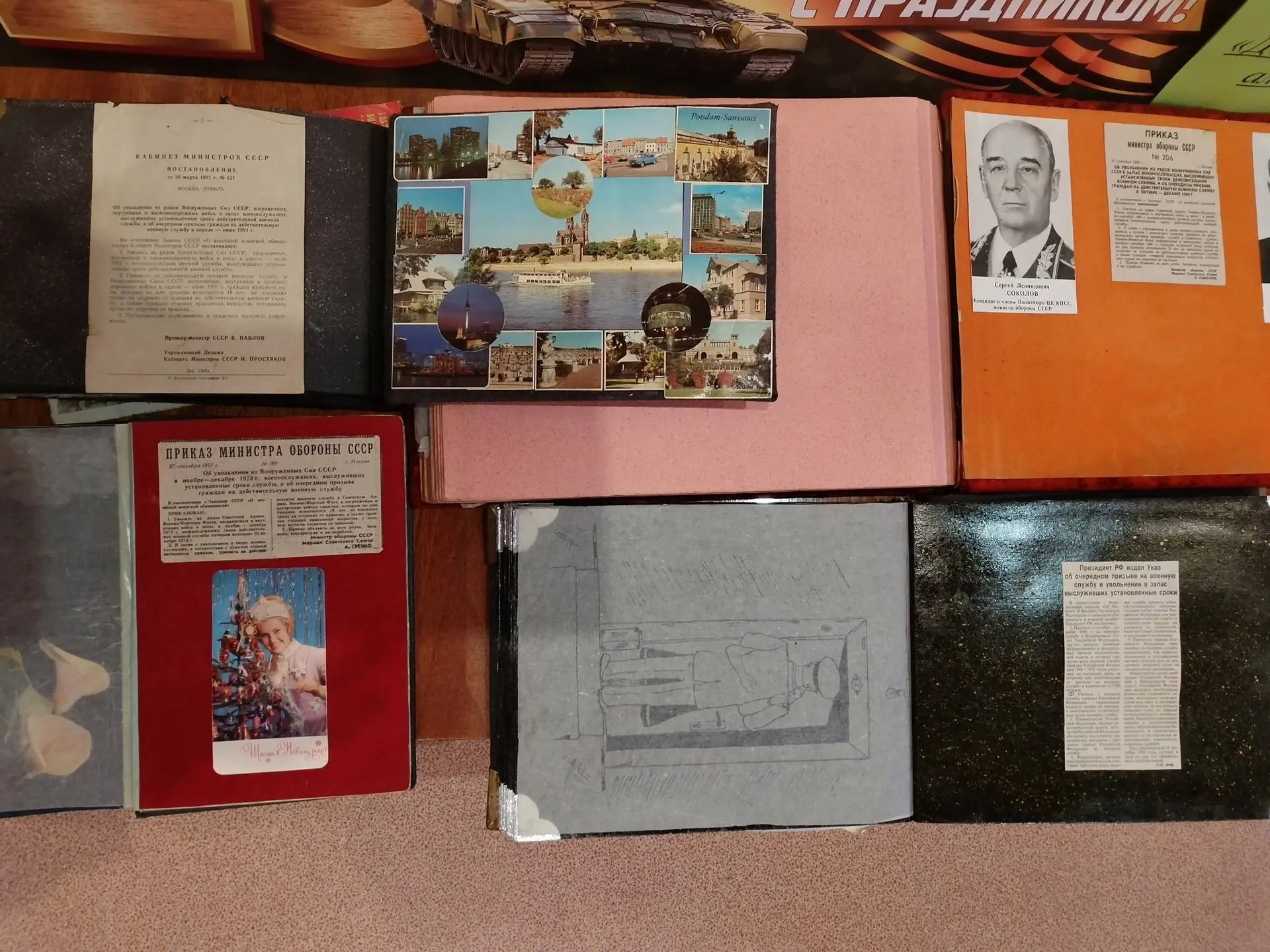На последней странице каждого альбома — бережно вклеенный вырезанный из газеты приказ министра обороны о демобилизации. Символ завершения армейского пути и начала новой жизни.