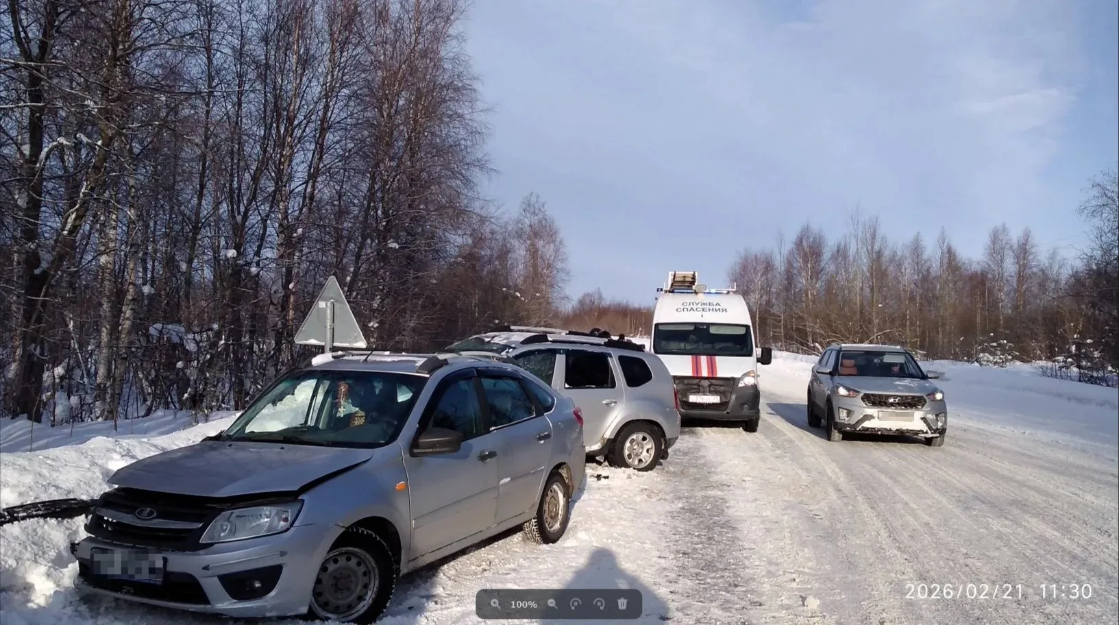 Днем 21 февраля на Кородском шоссе в Северодвинске произошло столкновение двух автомобилей - «Лада Гранта» и «Рено Дастер».