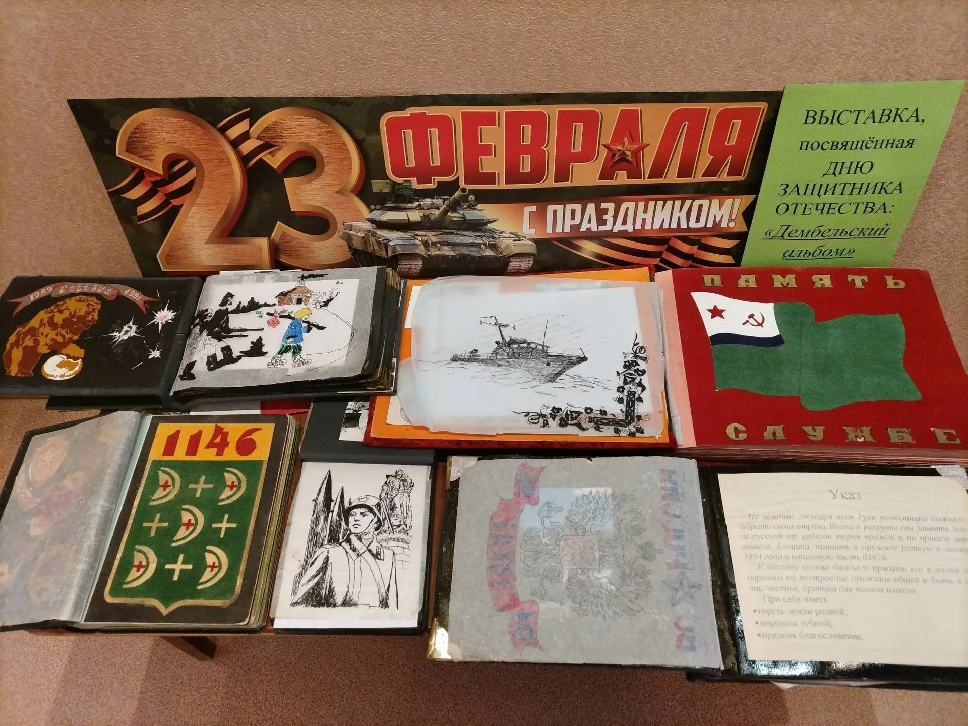 🎖️ На выставке представлены авторские альбомы солдат, служивших в ракетных войсках стратегического назначения (Россия и Будапешт), истории из войск связи, морской части погранвойск КГБ СССР, альбомы автомобилистов, проходивших службу в Германии.