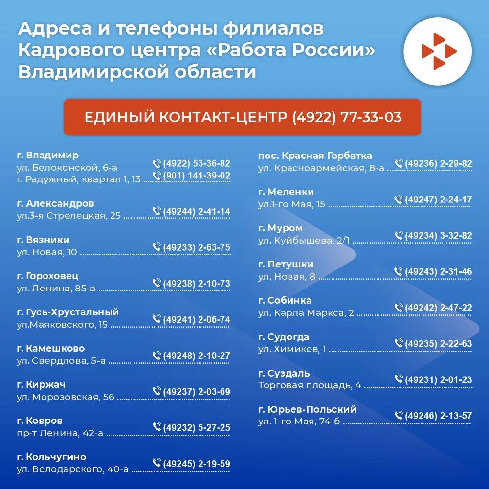 - по 1 – в города Гусь-Хрустальный и Ковров, в Вязниковский, Камешковский, Петушинский, Селивановский, Собинский, Судогодский, Юрьев-Польский районы.
