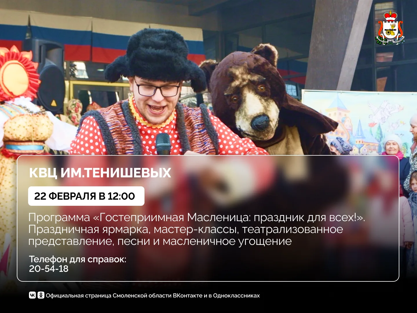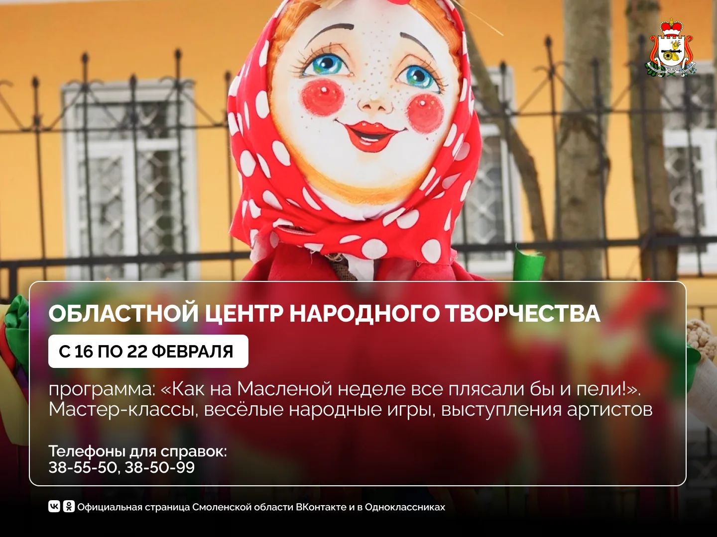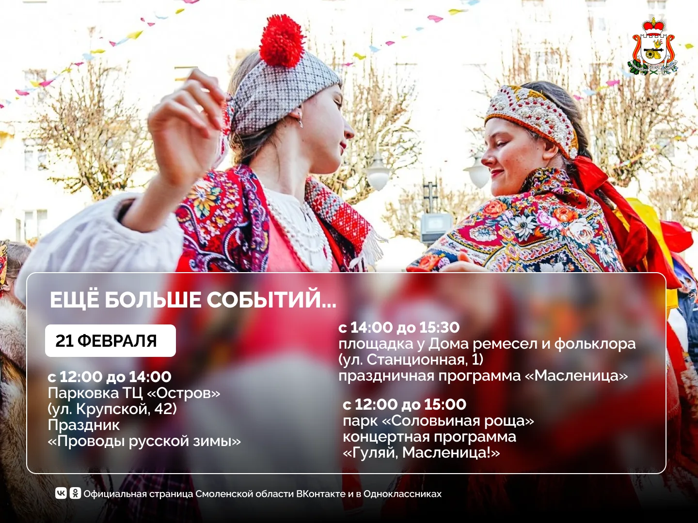 ☀️ На Смоленщине началась Масленичная неделя — время блинов и традиционных проводов зимы. Для жителей и гостей региона подготовлена насыщенная праздничная программа.