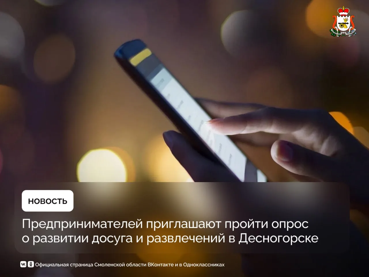 👋 Предпринимателей приглашают пройти опрос о развитии досуга и развлечений в Десногорске