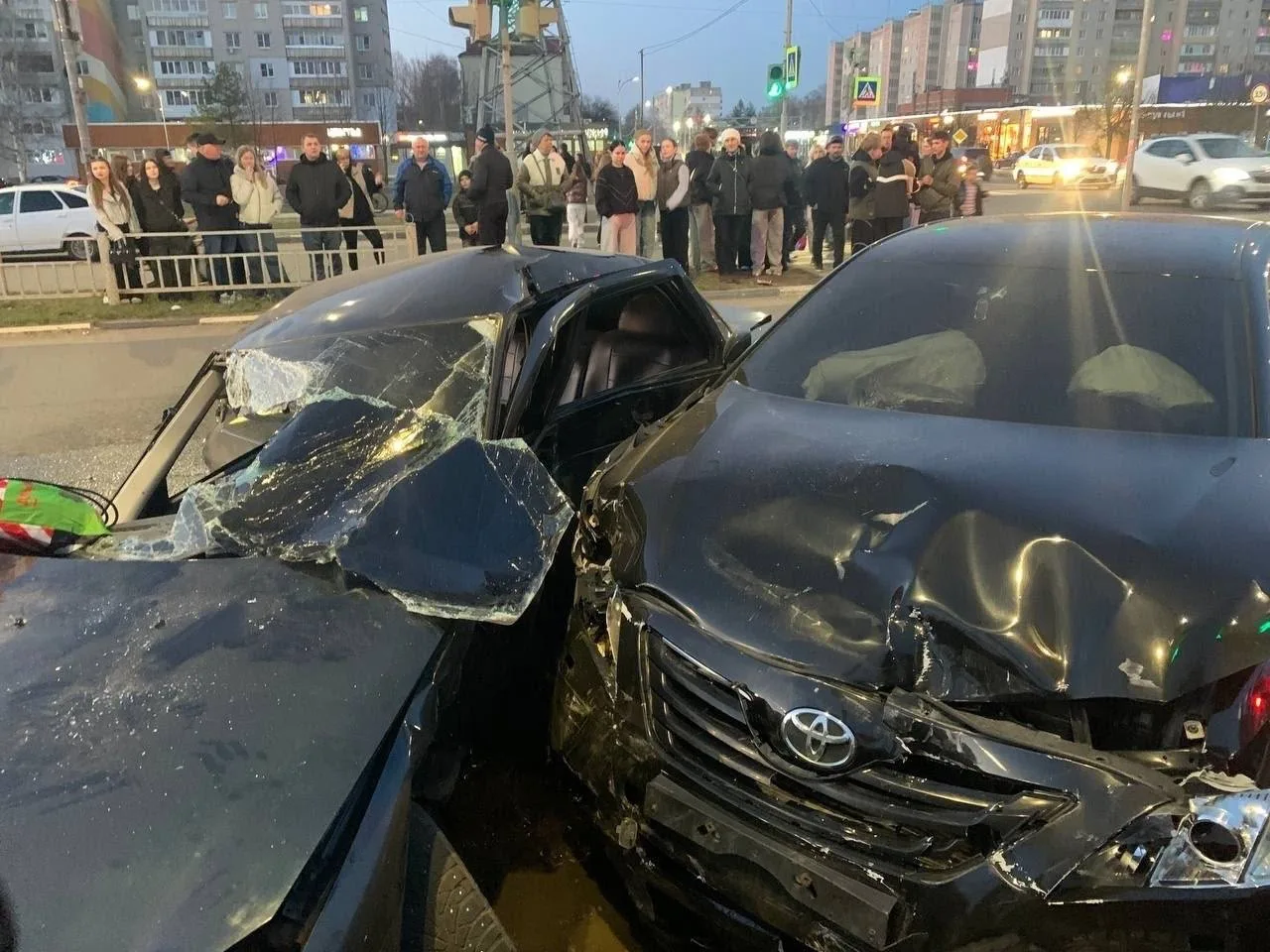 На одном из центральных перекрёстков Тутаева столкнулись автомобили, после чего их отбросило в сторону тротуара, где находились люди. К счастью, прохожие среагировали за доли секунды и успели отскочит.