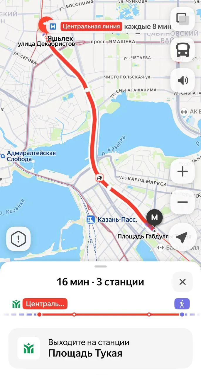 Новое поколение навигации на общественном транспорте в Яндекс Картах работает при поездках в метро, на автобусе и электричке в Казани и республике.