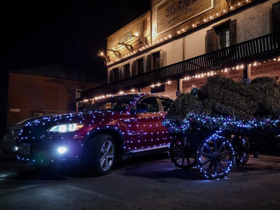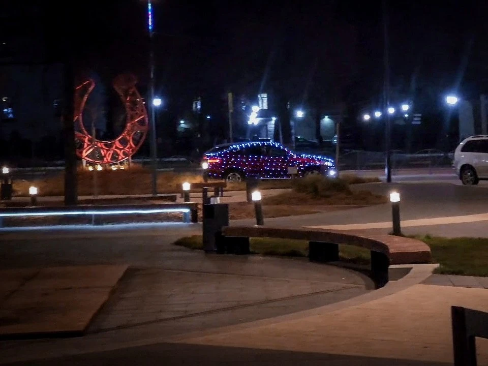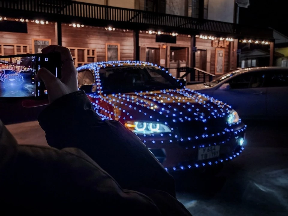 Украшенный гирляндами автомобиль удивил жителей Бронниц