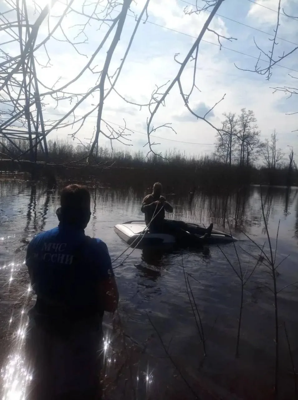 Спасатели оперативно помогли мужчине, оказавшемуся в ловушке тонущего автомобиля. Инцидент произошел в одном из СНТ под Электросталью, где река Вохонка из-за весеннего половодья разлилась, затопив машину. Водитель успел забраться на крышу тонущего авто, откуда его и эвакуировали.