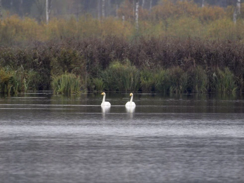 Редкие лебеди-кликуны были замечены в парке «Лосиный остров». Вид занесен в Красную книгу Московской области, предыдущую встречу здесь фиксировали в октябре 2020-го.