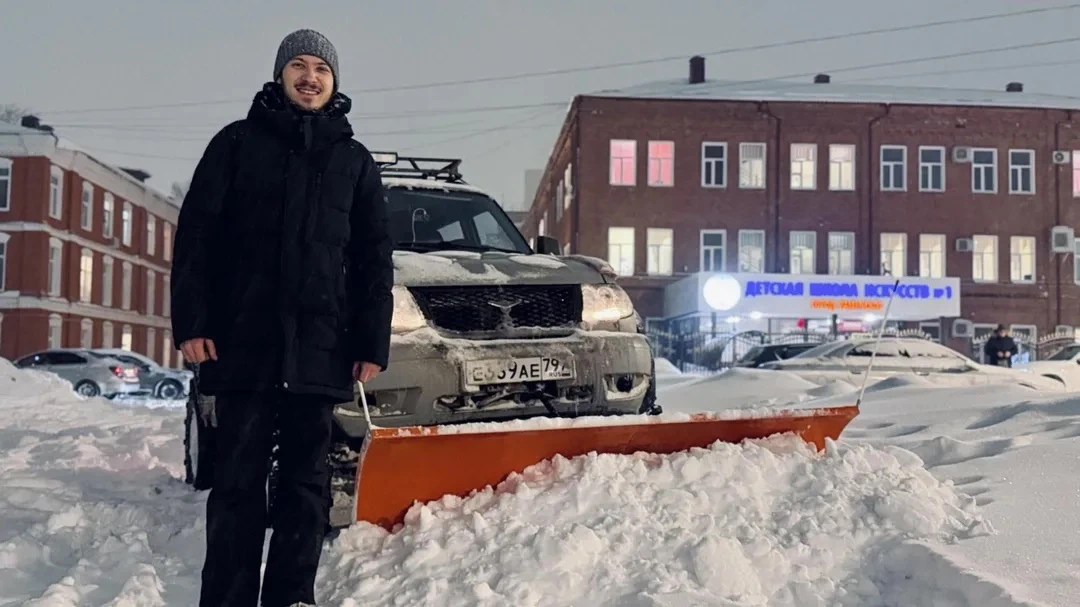 Для него нынешние сугробы — привычная работа, которую он выполняет с душой, не теряя бодрости духа даже в самый разгар непогоды.