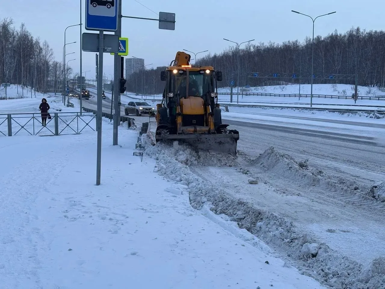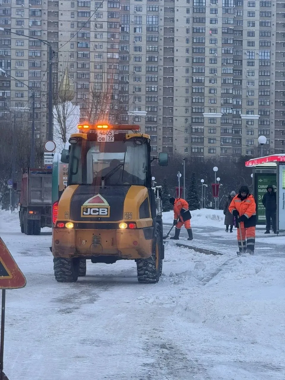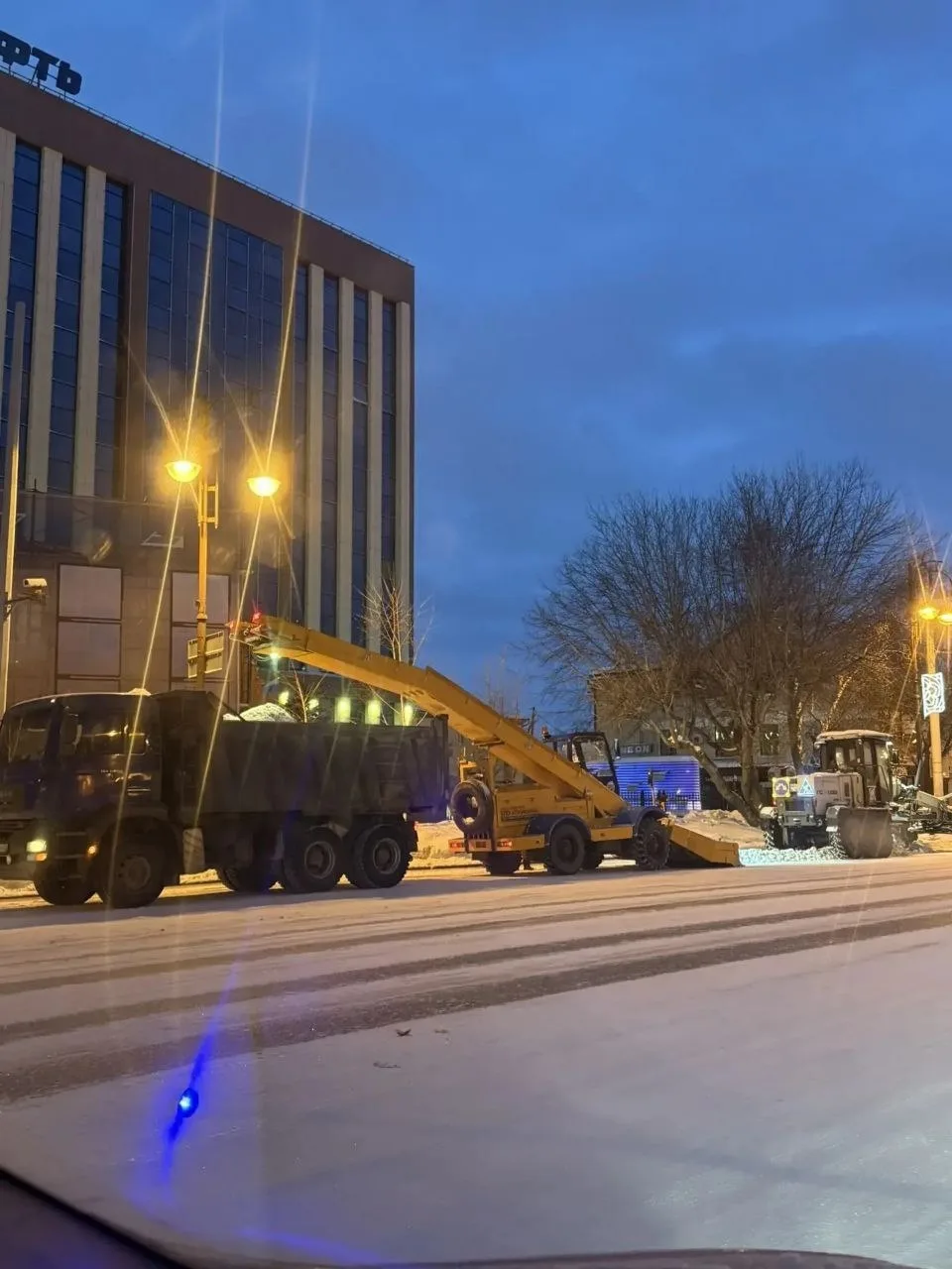 С раннего утра по улицам Тюмени ездит снегоуборочная техника. ❄️Коммунальщики устраняют последствия вчерашнего снегопада.