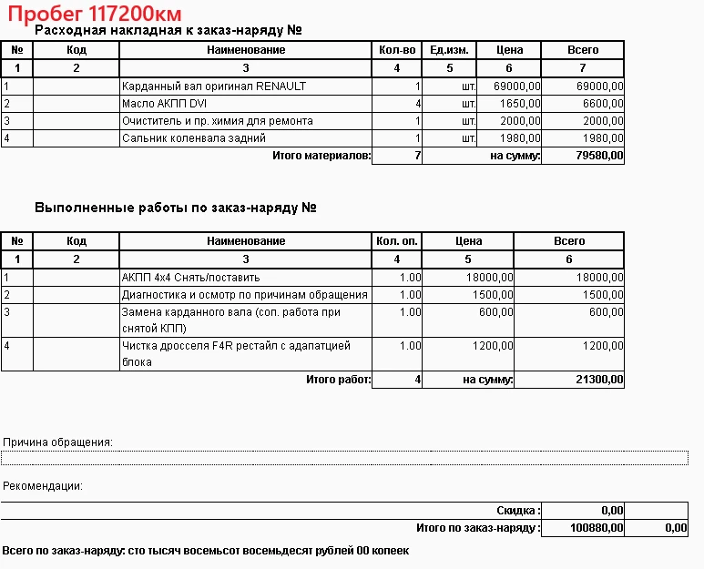 Смета на осмотр Ниссан террано 2018г.в. пробег 117200км, 2,0 16V АКПП 4x4