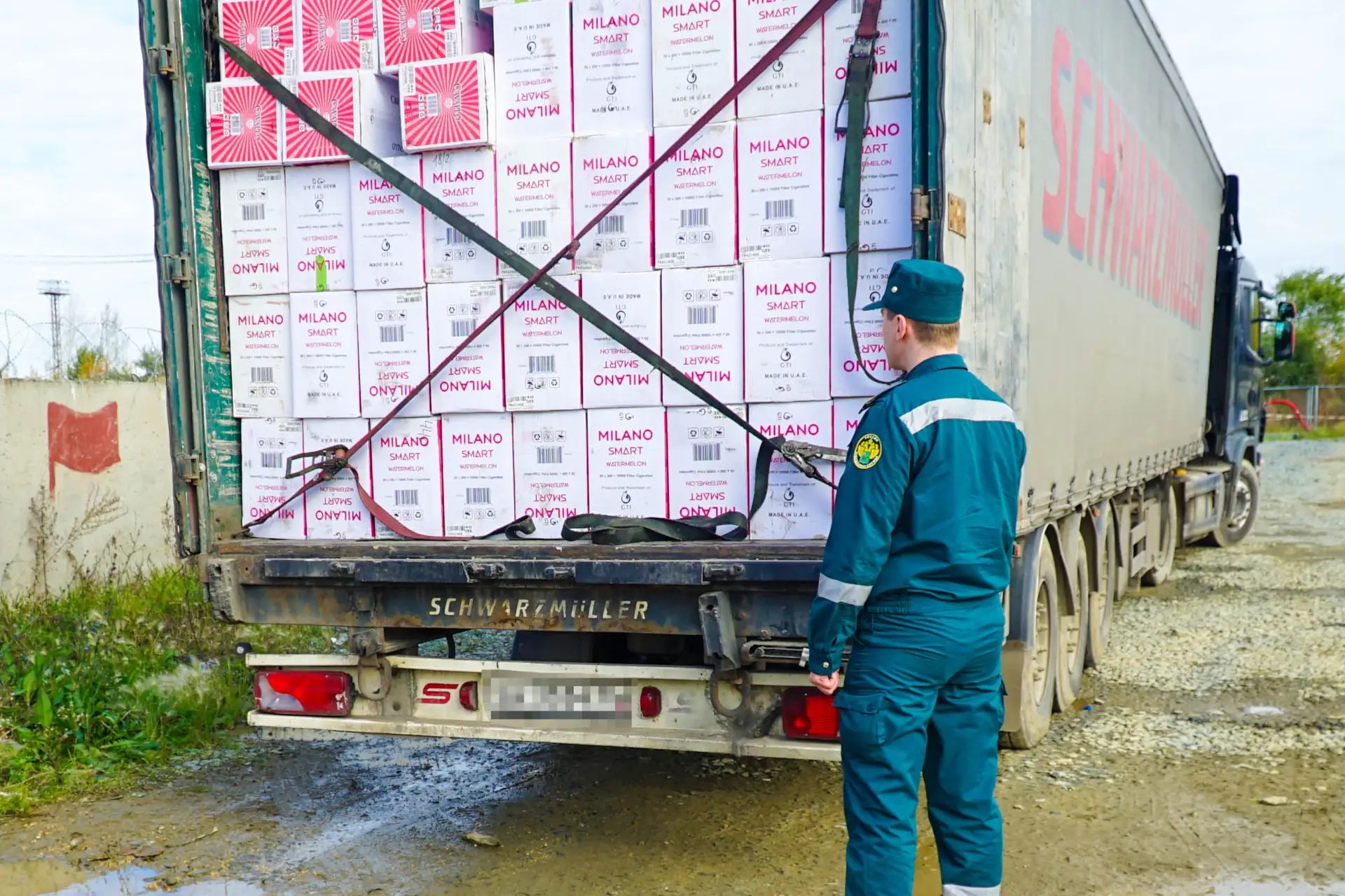 Более 1 млн пачек сигарет пытались провезти на территорию РФ под видом товаров народного потребления. Разрешающих документов на товар у перевозчика не было.
