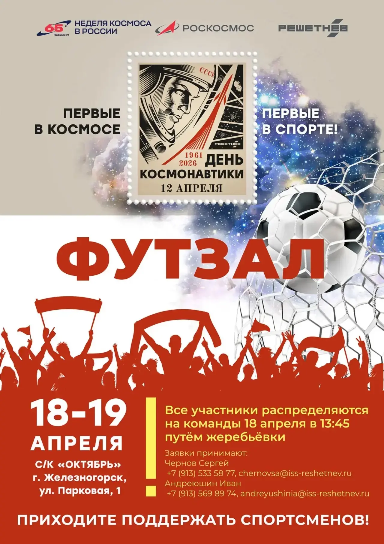 Добро пожаловать на Кубок космонавтики АО «РЕШЕТНЁВ» по футзалу