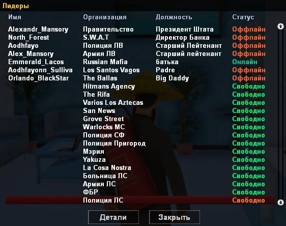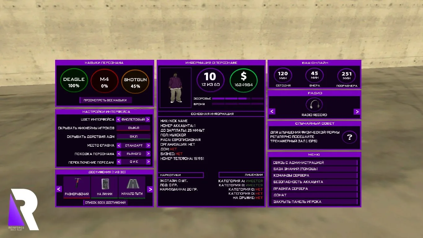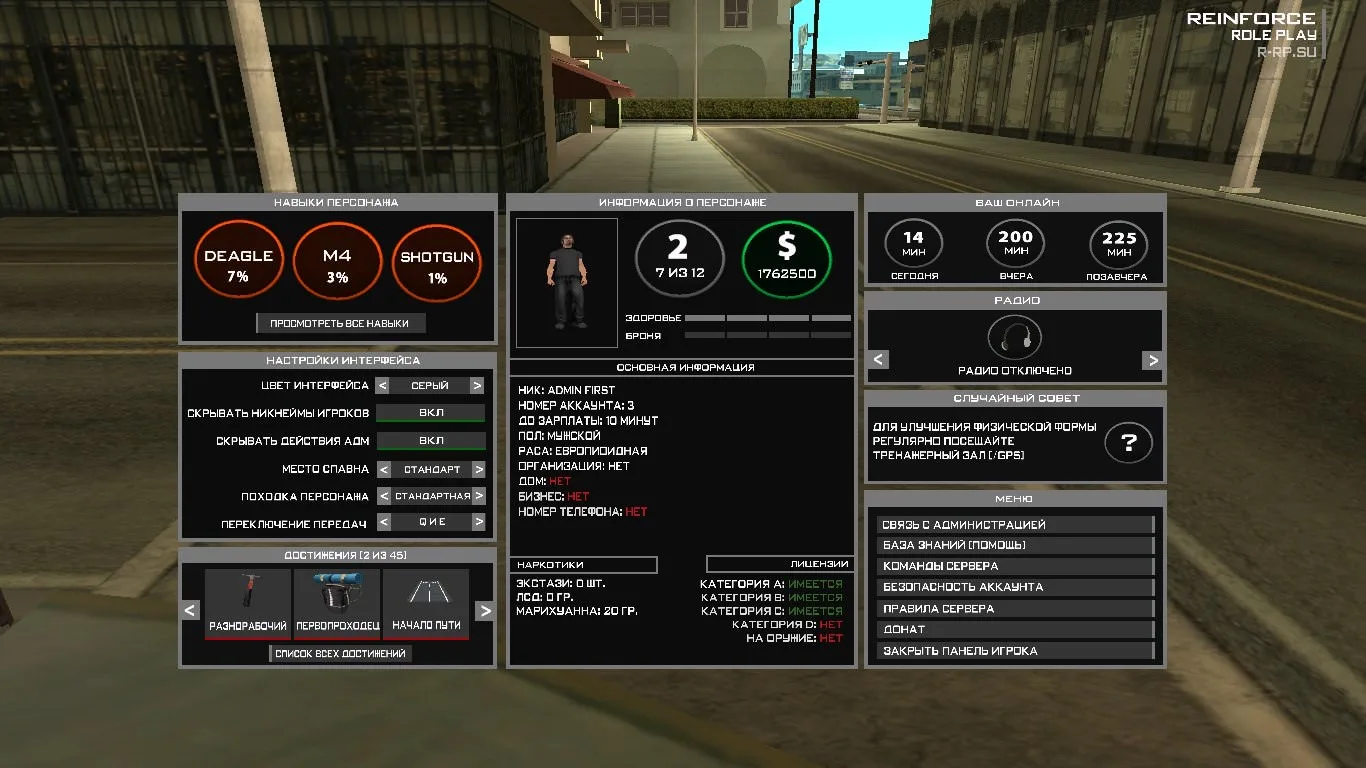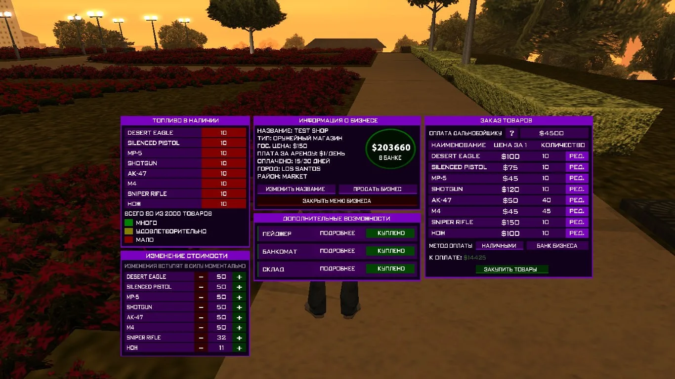 - Есть система инвентаря на текстдрав, и на диалоге (выбирается в настройках) там можно продавать, обмениваться с другими игроками