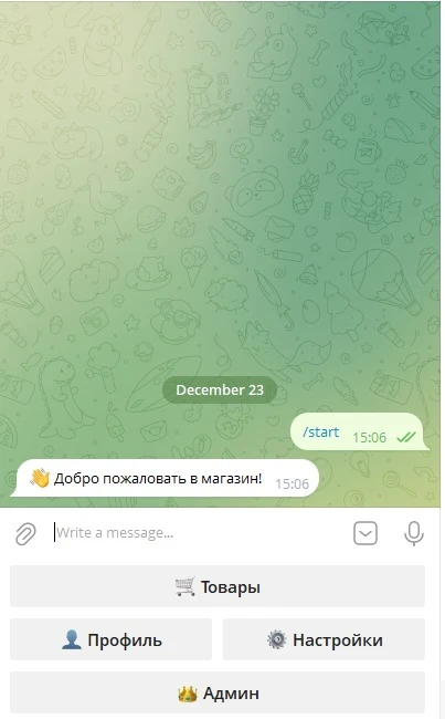 - Просмотр купленных товаров (история сохраняется 30 дней)