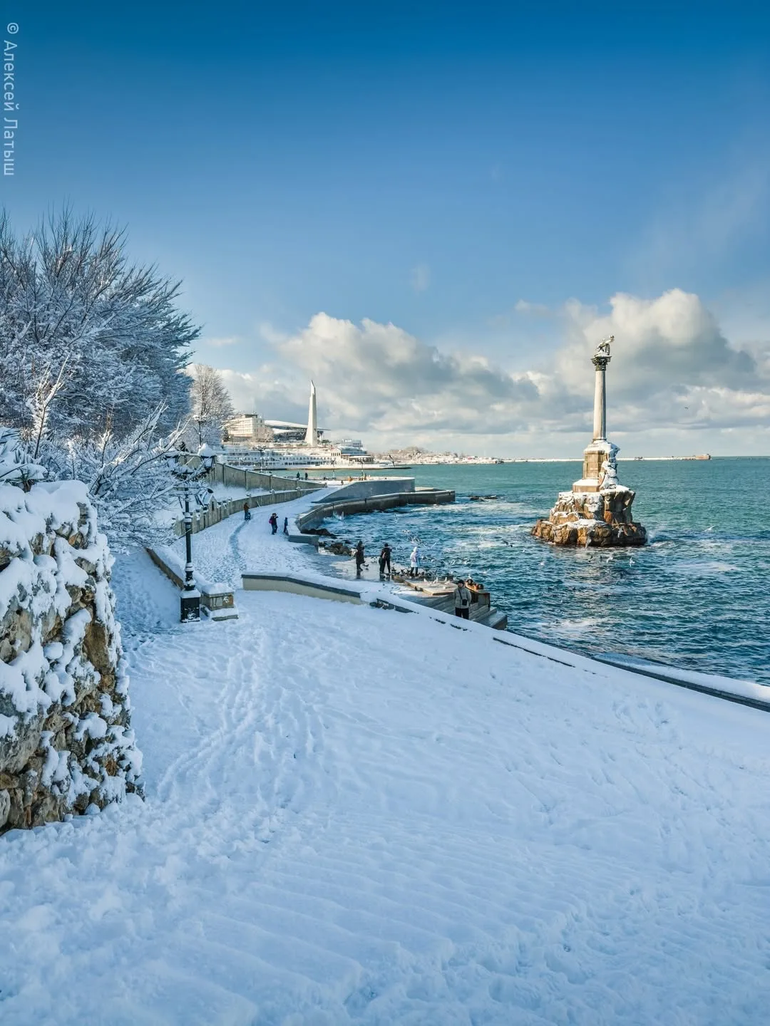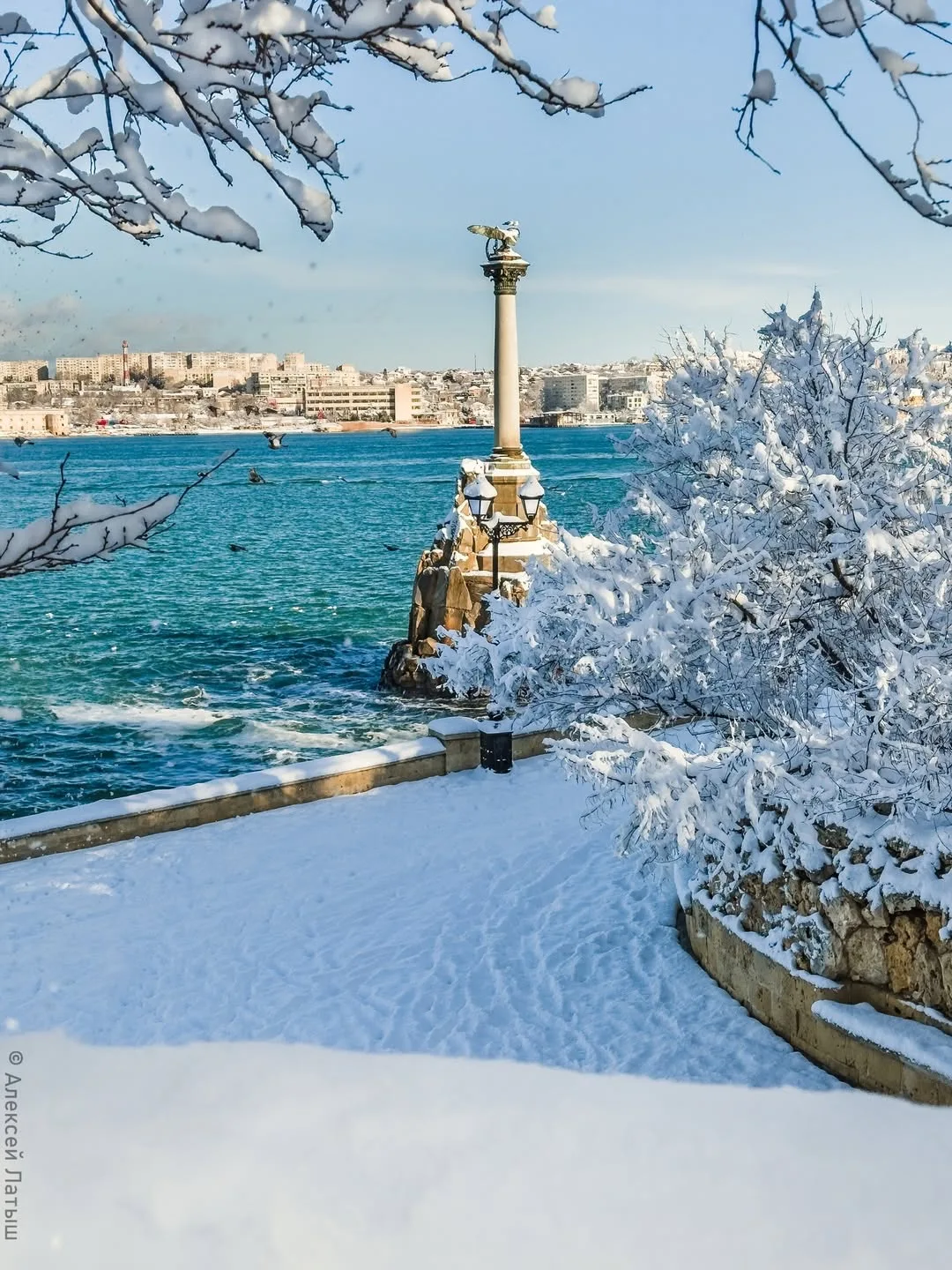 ❄️Когда вся Россия утонула в снегу, наш южный город у моря не стал исключением. Вашему вниманию белоснежные кадры Севастополя глазами моего телефона 🤳🏻