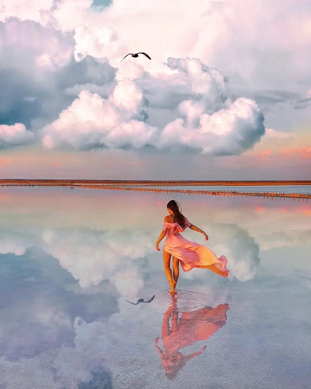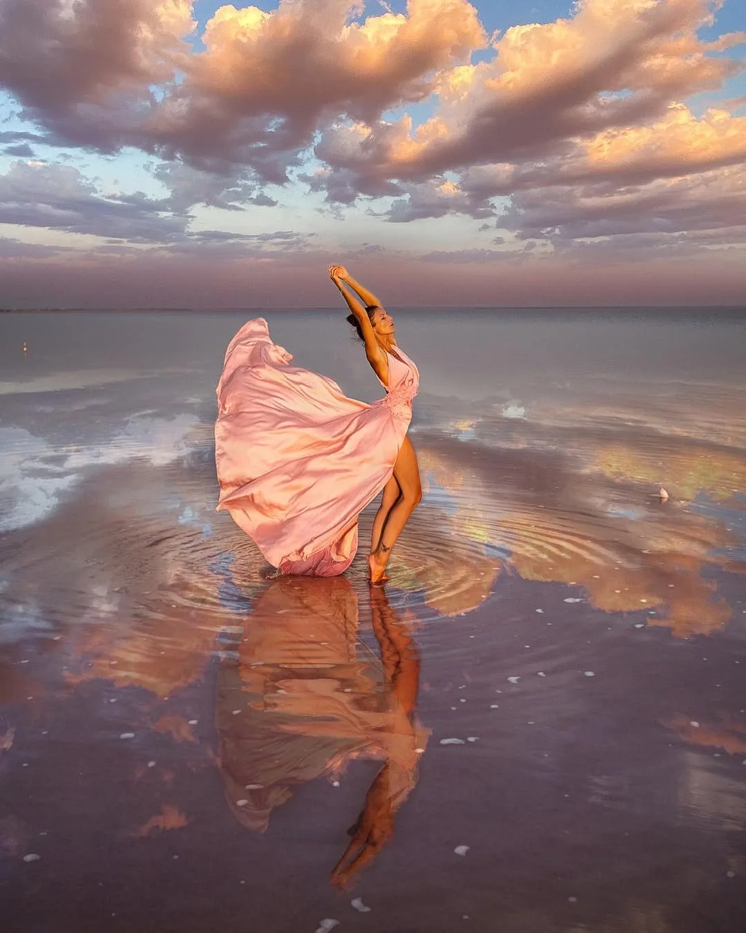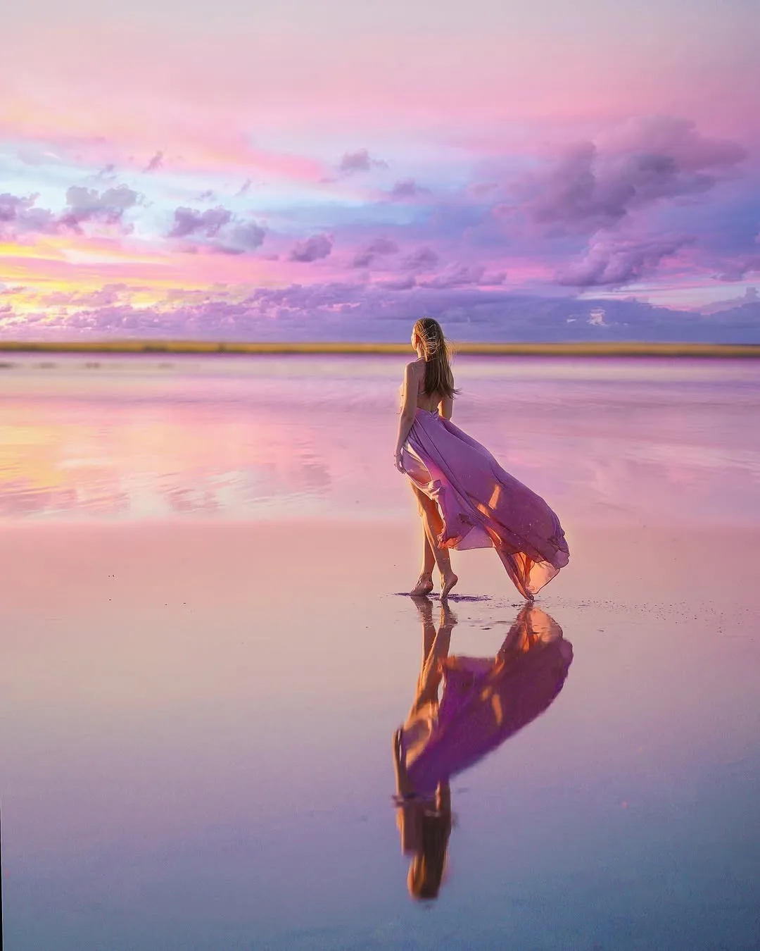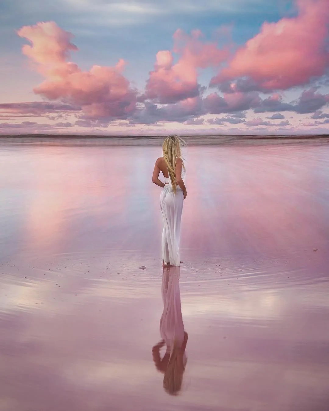 На закате и рассвете тоже красиво, но цвет воды не такой розовый.