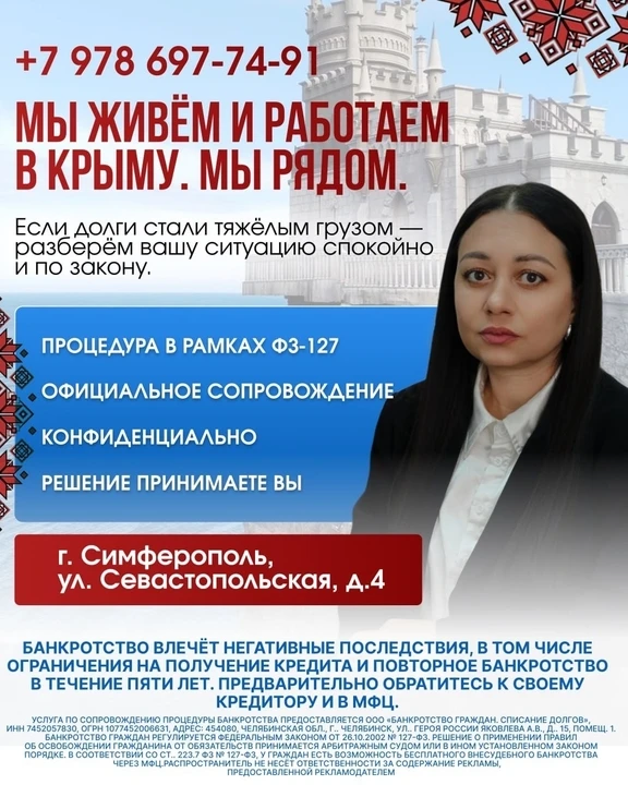 Я Альме Мустафаевна специалист по банкротству в Крыму.
