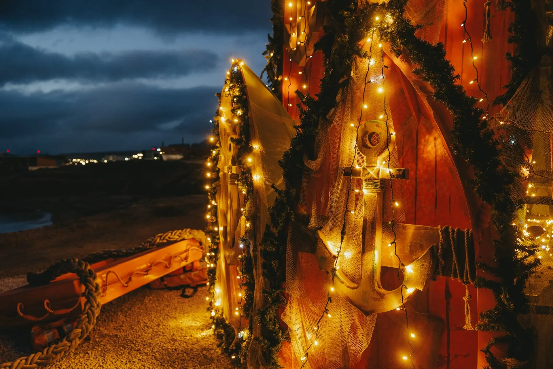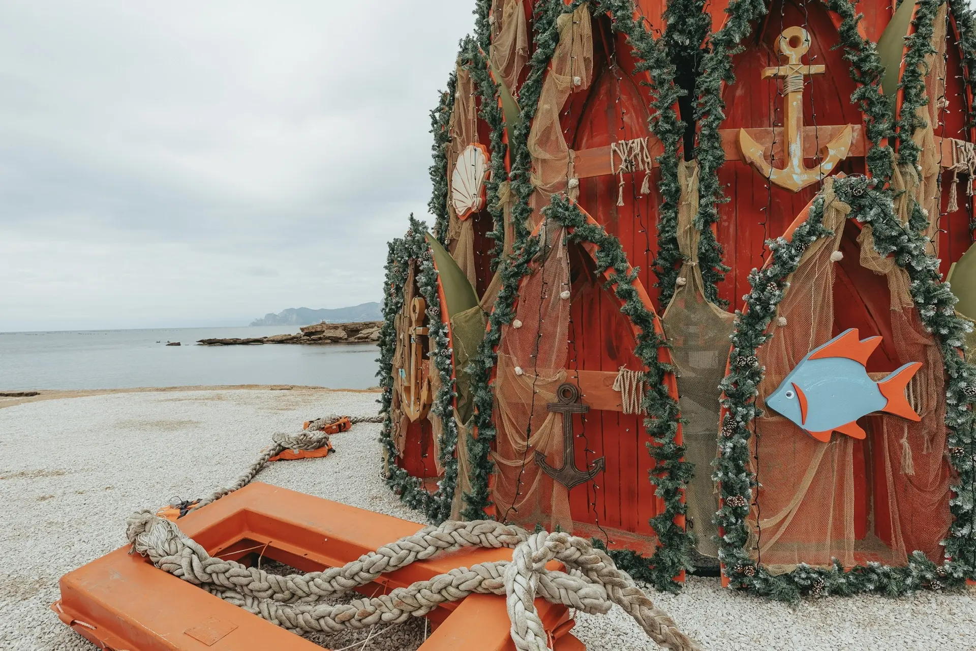 В Судаке на набережной Вдохновения установили восьмиметровую Морскую ёлку. Необычный арт-объект собран из старинных лодок и декоративных якорей