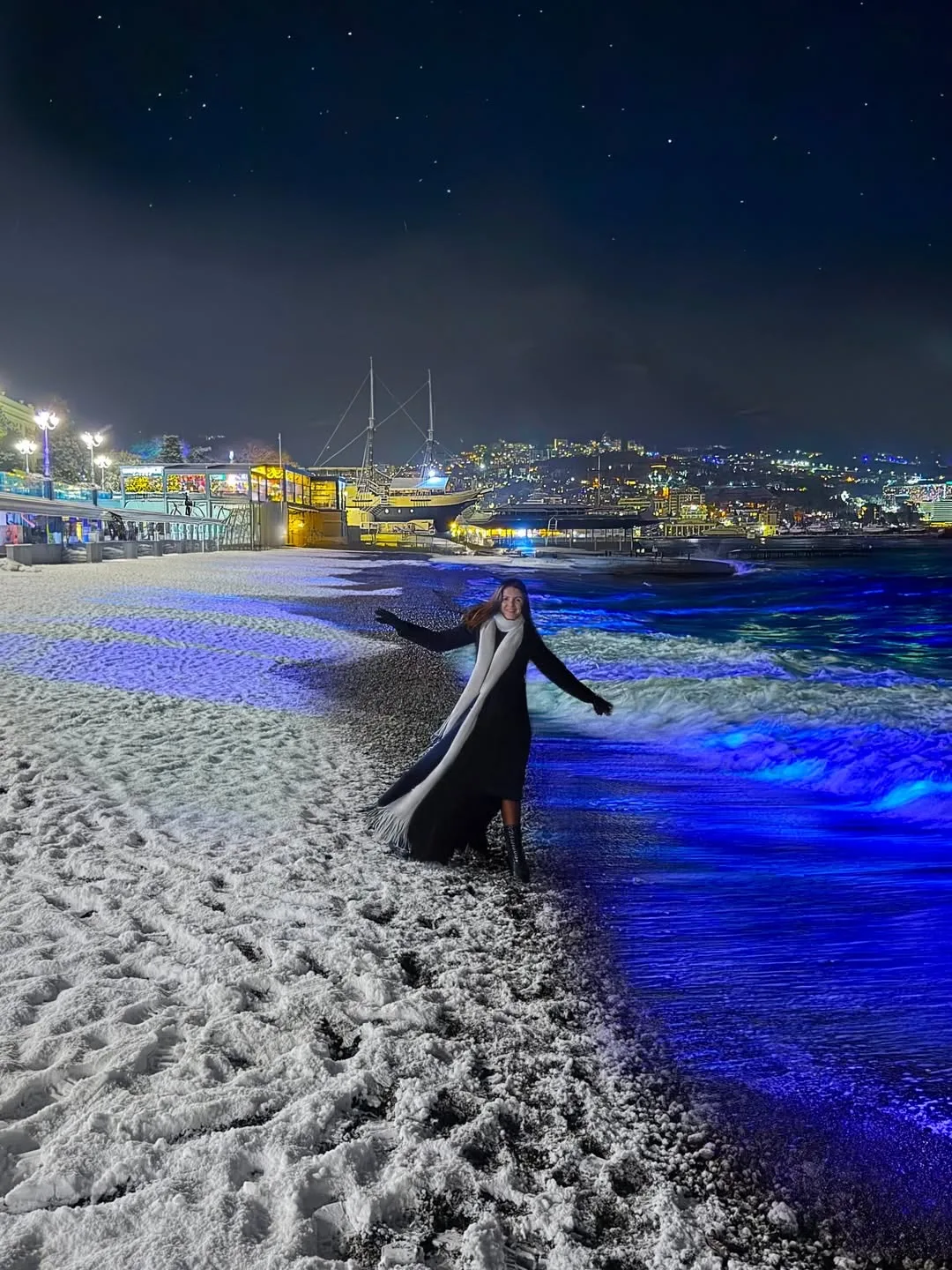 И для нас, крымчан, это весьма необычное и нечастое явление- заснеженные пляжи. Особенно в Ялте.