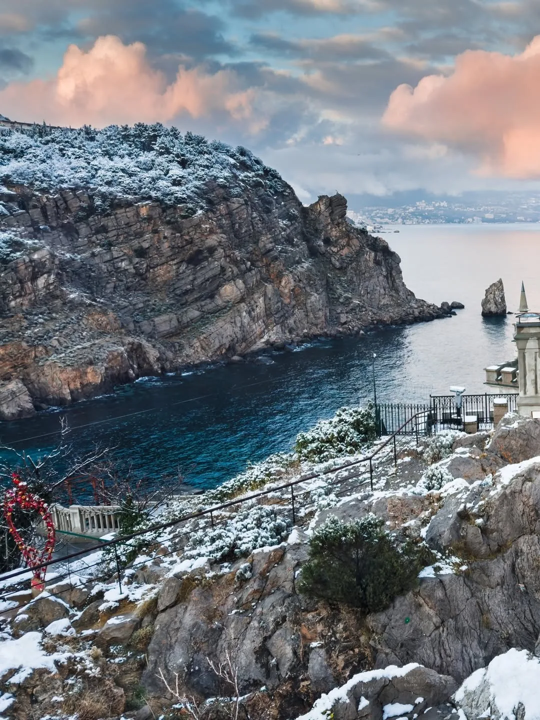 ❄️Зима наконец добралась до Ялты, а я до Гаспры. Ни разу не видел здесь снег своими глазами. Зато вчера повезло: я поднялся на скалу, подождал, когда заходящее солнце подсветит облака, достал телефон и снял эти кадры. Если бы мне кто-нибудь раньше сказал, что я сделаю такие фотографии на телефон - я бы точно не поверил 😁