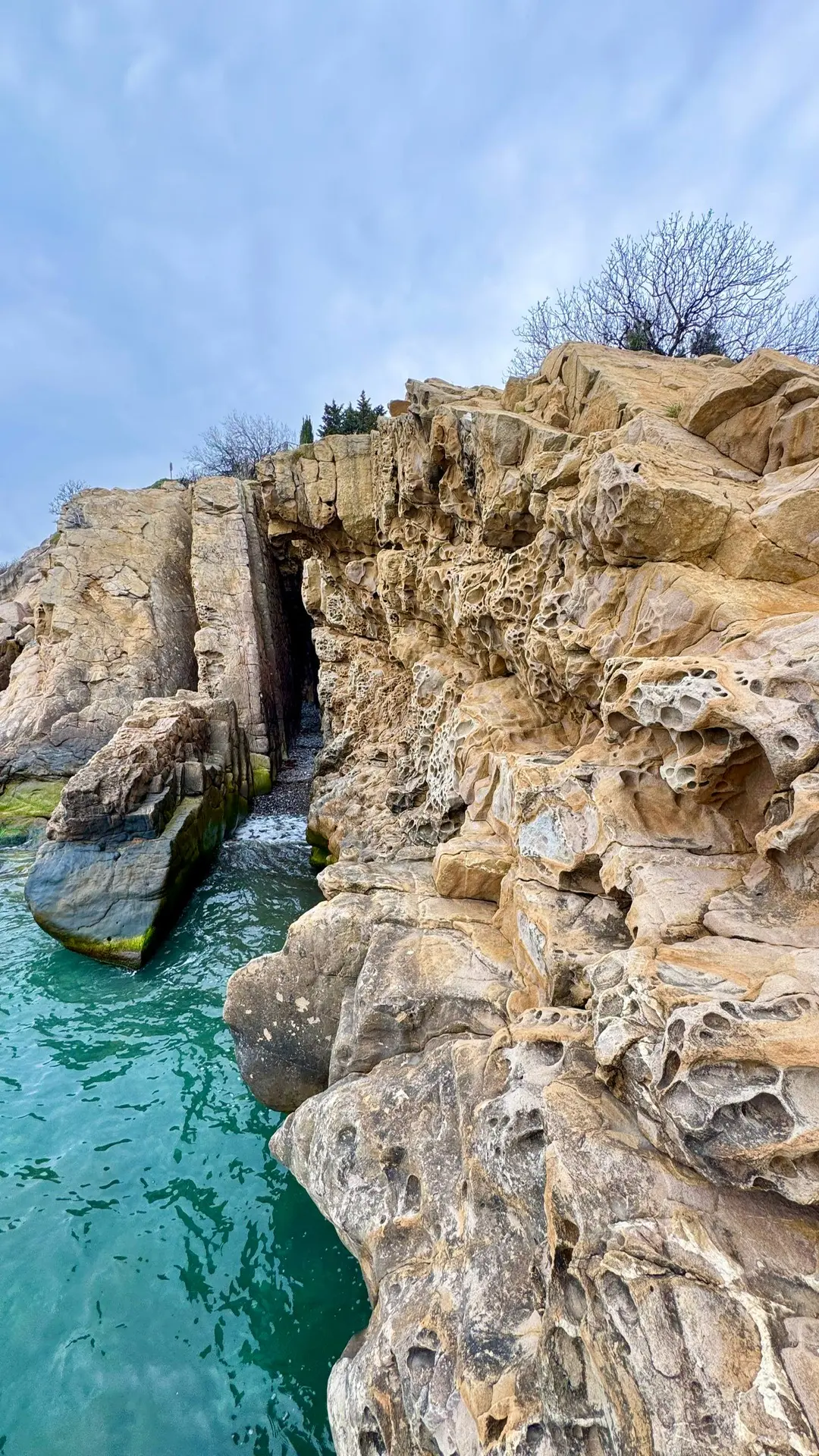 Название скалы получили благодаря их внешнему сходству с сыром. Причудливые отверстия и формы напомнили людям ломтики сыра-так появилось народное название «Сырные скалы».
