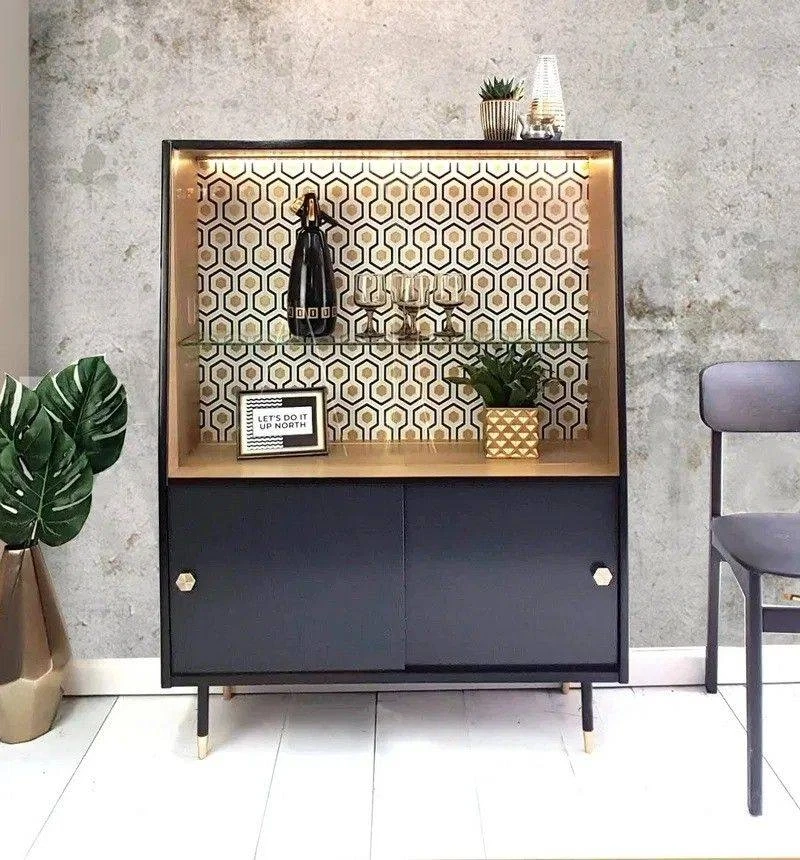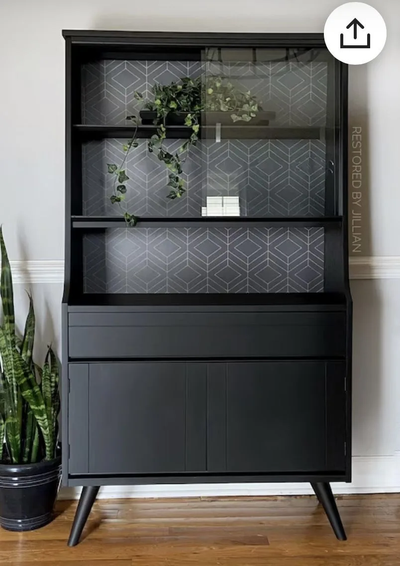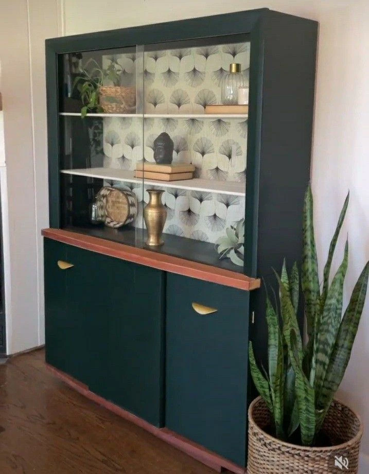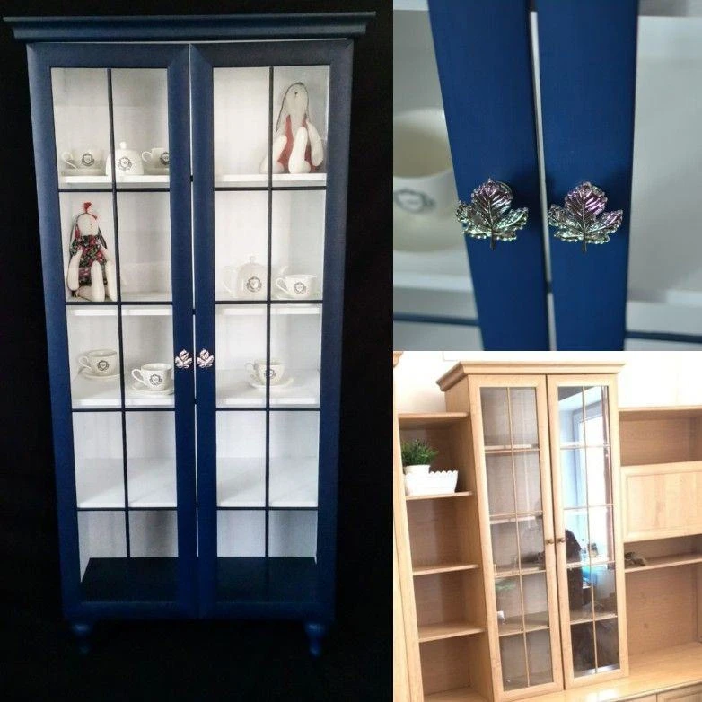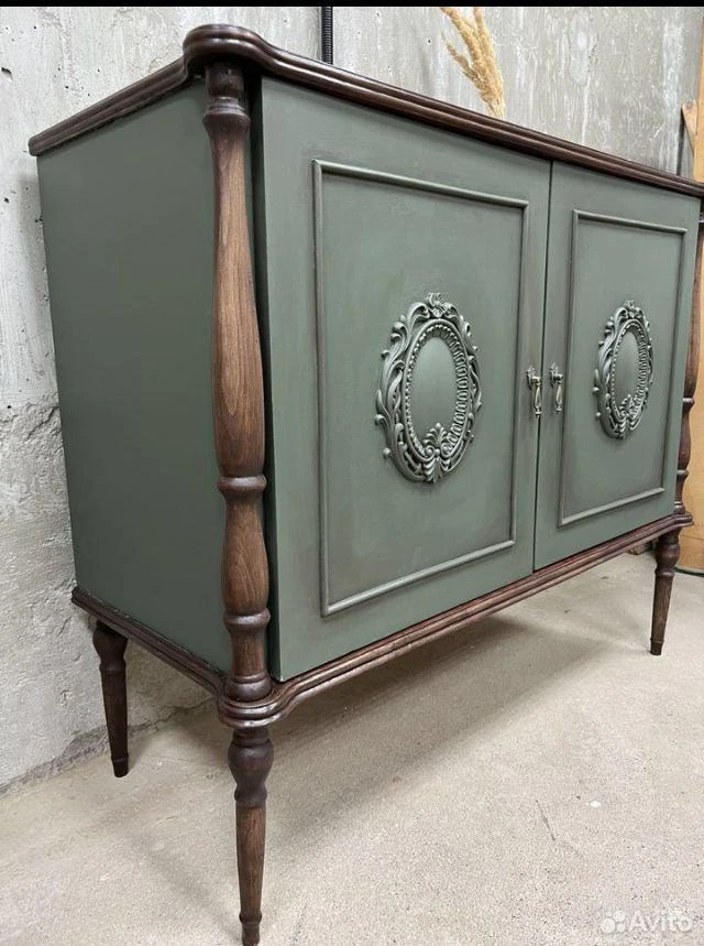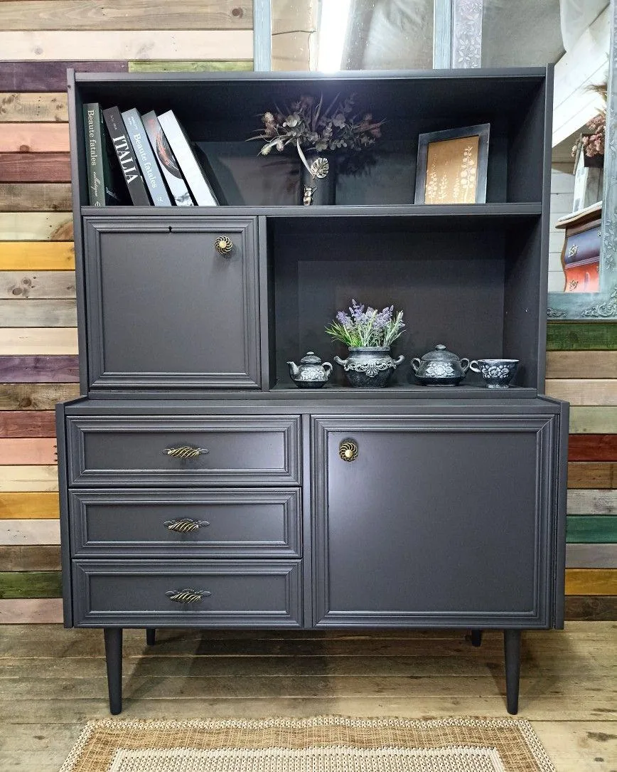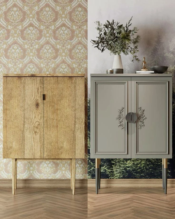 Если у вас стоит мебель середины прошлого века, которая не из натурального дерева, а ДСП под бумагой и лаком - то испортить ее невозможно переделкой.. Смело переделывайте!.. Тут именно переделка - перекраска, наклейка обоев, молдов, рамочек, замена ручек... Но иногда такой классный результат получается!... 😜👌