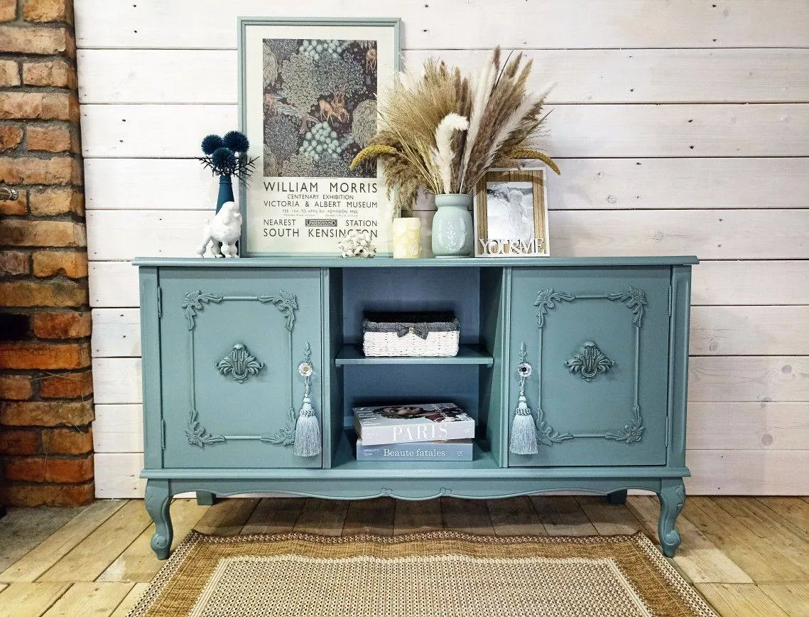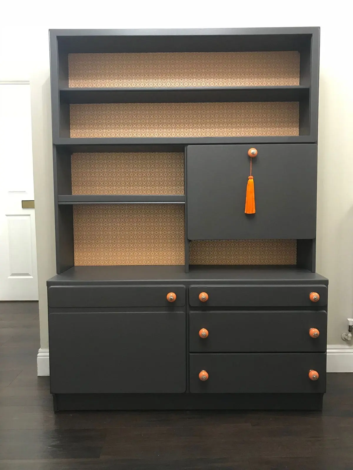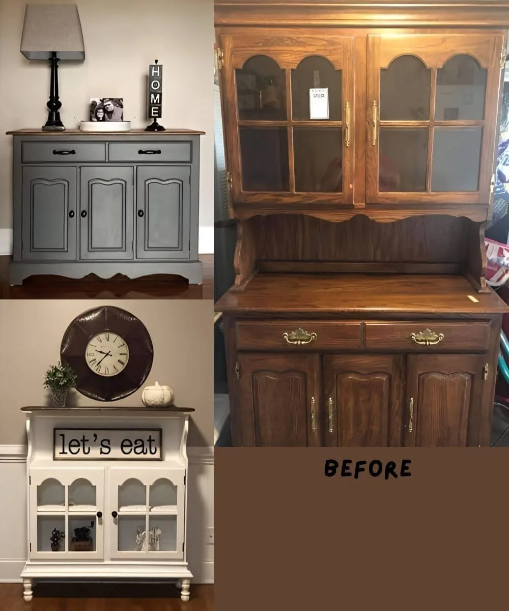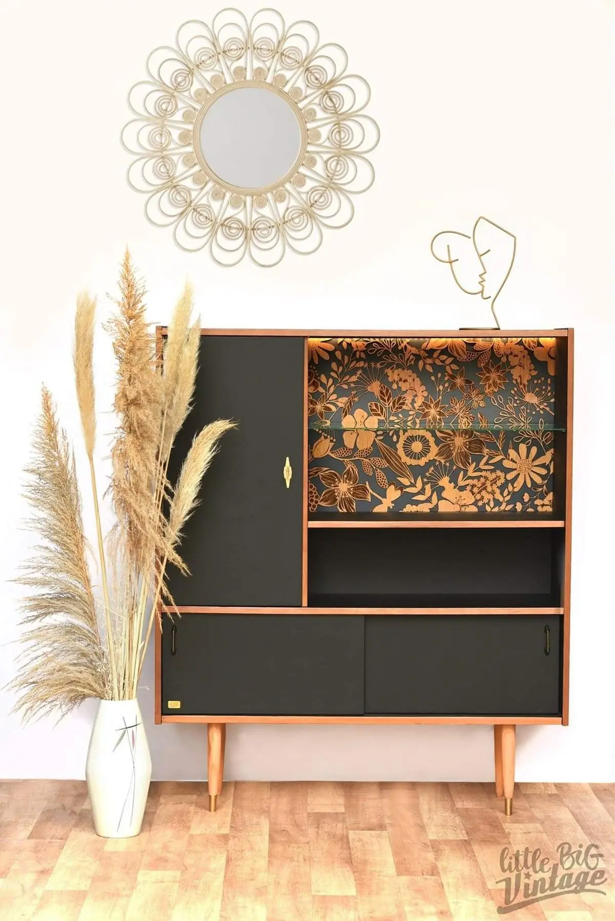 Если у вас стоит мебель середины прошлого века, которая не из натурального дерева, а ДСП под бумагой и лаком - то испортить ее невозможно переделкой.. Смело переделывайте!.. Тут именно переделка - перекраска, наклейка обоев, молдов, рамочек, замена ручек... Но иногда такой классный результат получается!... 😜👌