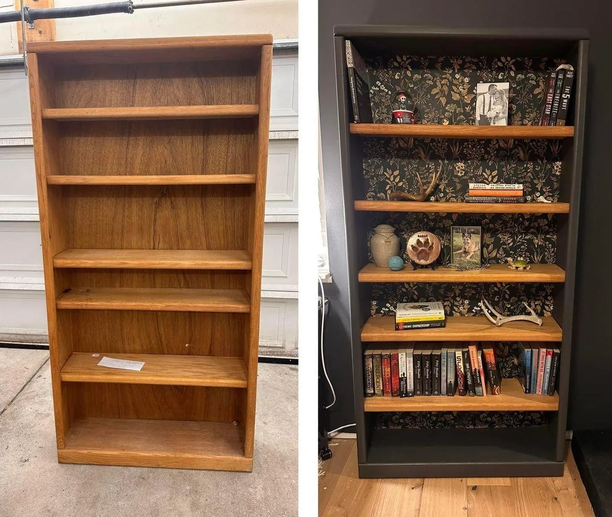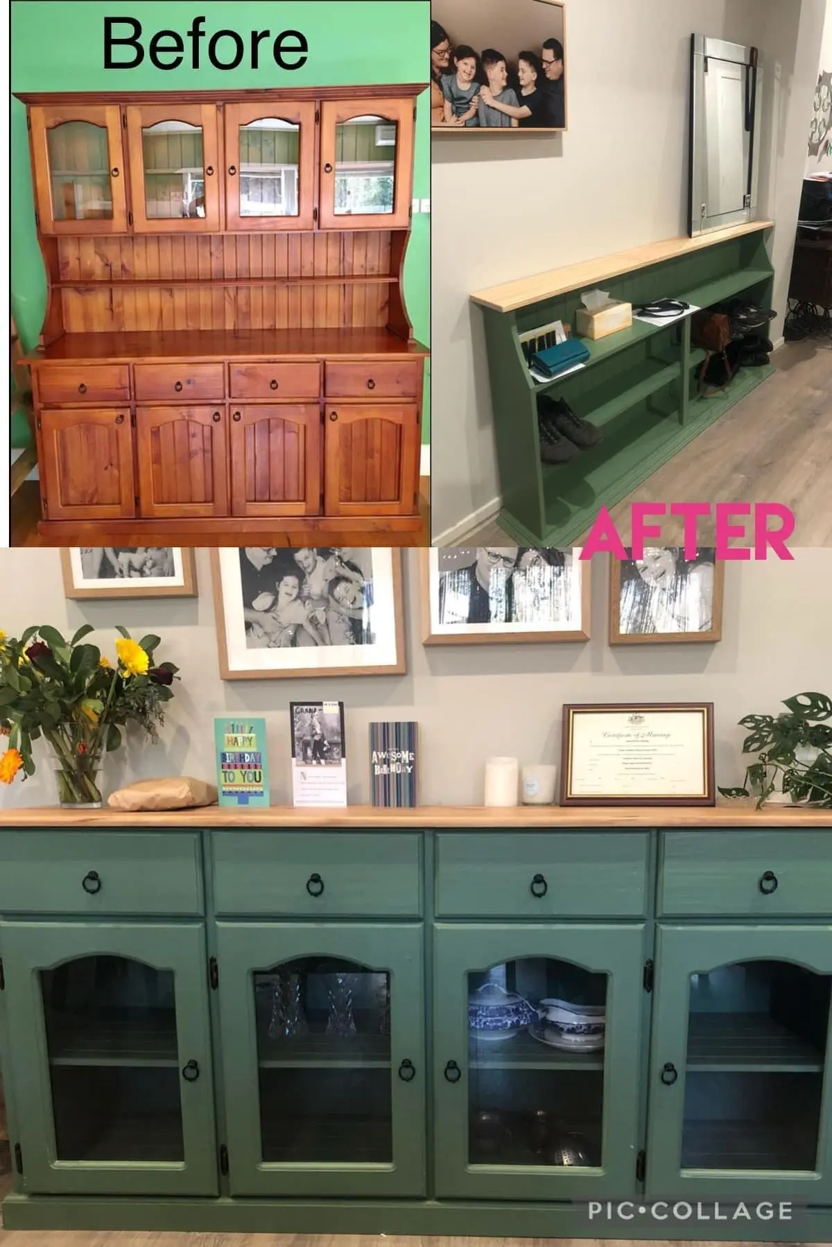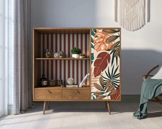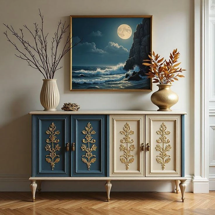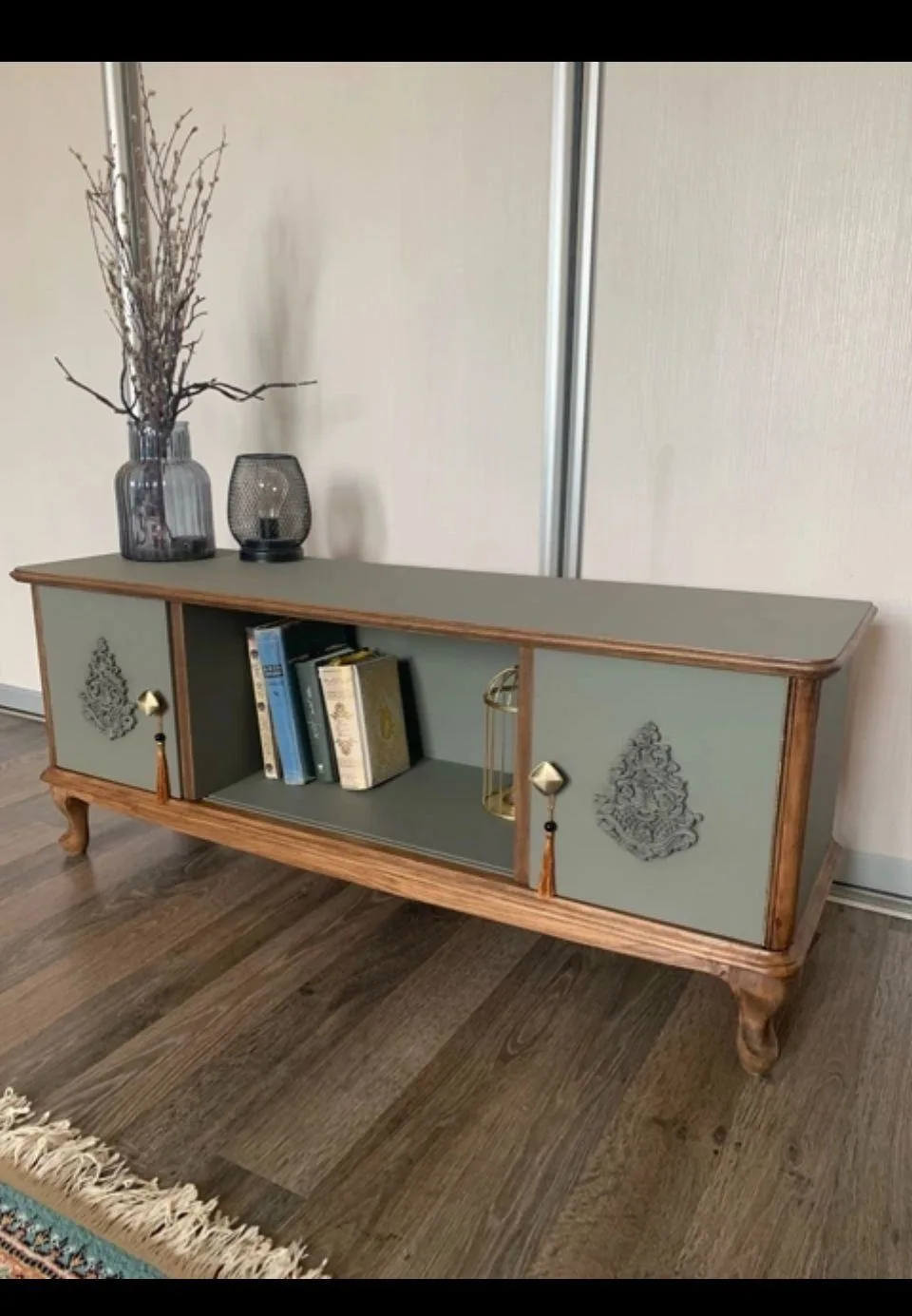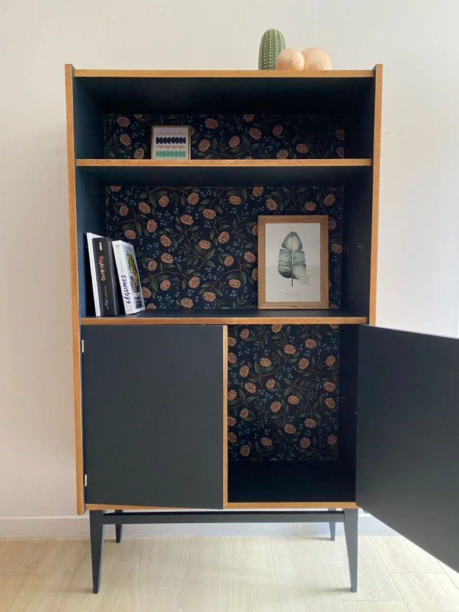 Если у вас стоит мебель середины прошлого века, которая не из натурального дерева, а ДСП под бумагой и лаком - то испортить ее невозможно переделкой.. Смело переделывайте!.. Тут именно переделка - перекраска, наклейка обоев, молдов, рамочек, замена ручек... Но иногда такой классный результат получается!... 😜👌