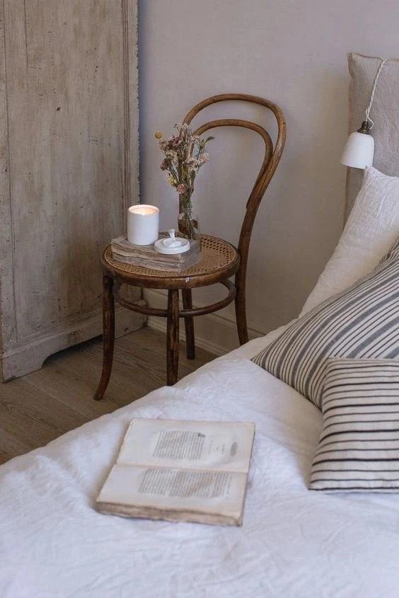 Старенький, одинокий, но очень красивый стул - куда его?.. Вместо прикроватной тумбы!... 😜👌