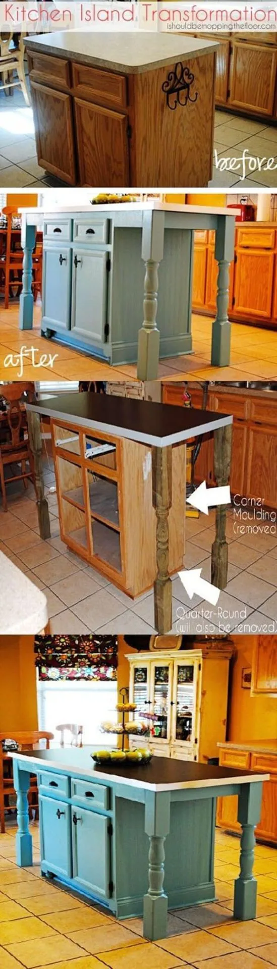 Для этой идеи подойдет любая тумба или кухонный шкафчик... И не обязательно эта переделанная конструкция должна быть кухонным островом - это может быть дачная кухня, рабочий стол мастерицы, садовый стол на веранде.. 😜👌 (нажимайте на фото - оно длинное в высоту))