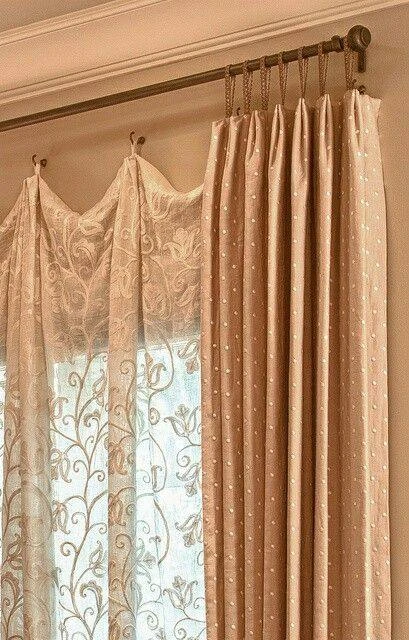 не всем нравятся двухрядные карнизы - они сильно отстают от стены... И люди придумывают различные варианты, как повесить и шторы и тюль, когда карниз однорядный.. 😜👌