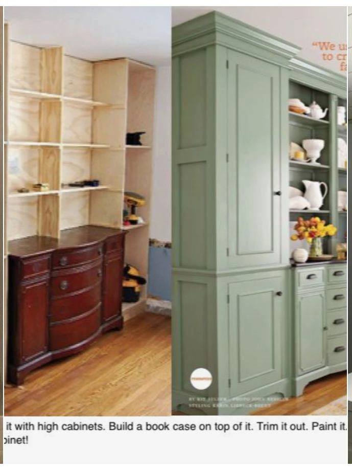 На этом фото очень понятна идея, как если у вас есть комод, его можно надстроить и расширить и превратить в более функциональный предмет мебели, с гораздо большим местом для хранения... 😜👌