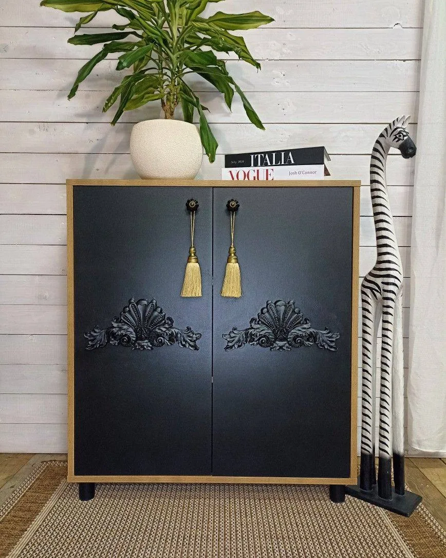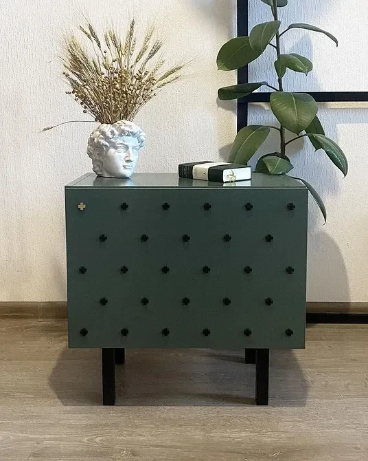 Таких простых, невнятных тумбочек очень много... Это даже могут быть шкафчики от кухни... Прежде всего - это поставить их на ножки, и приделать им новые ручки - уже другой вид... Ну а уже декорация - это дело вашей фантазии.. 😜👌