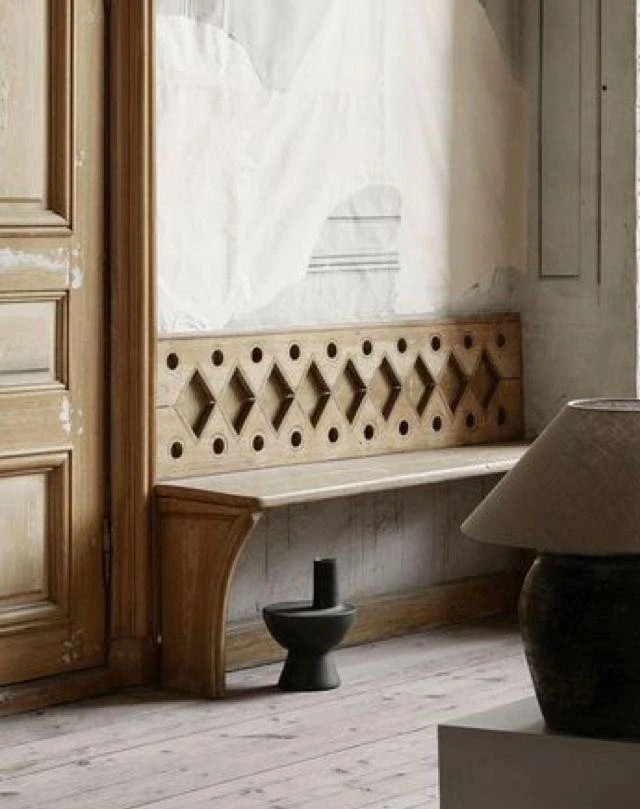 Подобную лавочку можно вписать в любой размер проема, ниши и подобное... А сделать ее нетрудно - круглые дырки просверливаются коронками, а дырки-ромбы - это составляющие треугольники из двух досок.. 😜👌