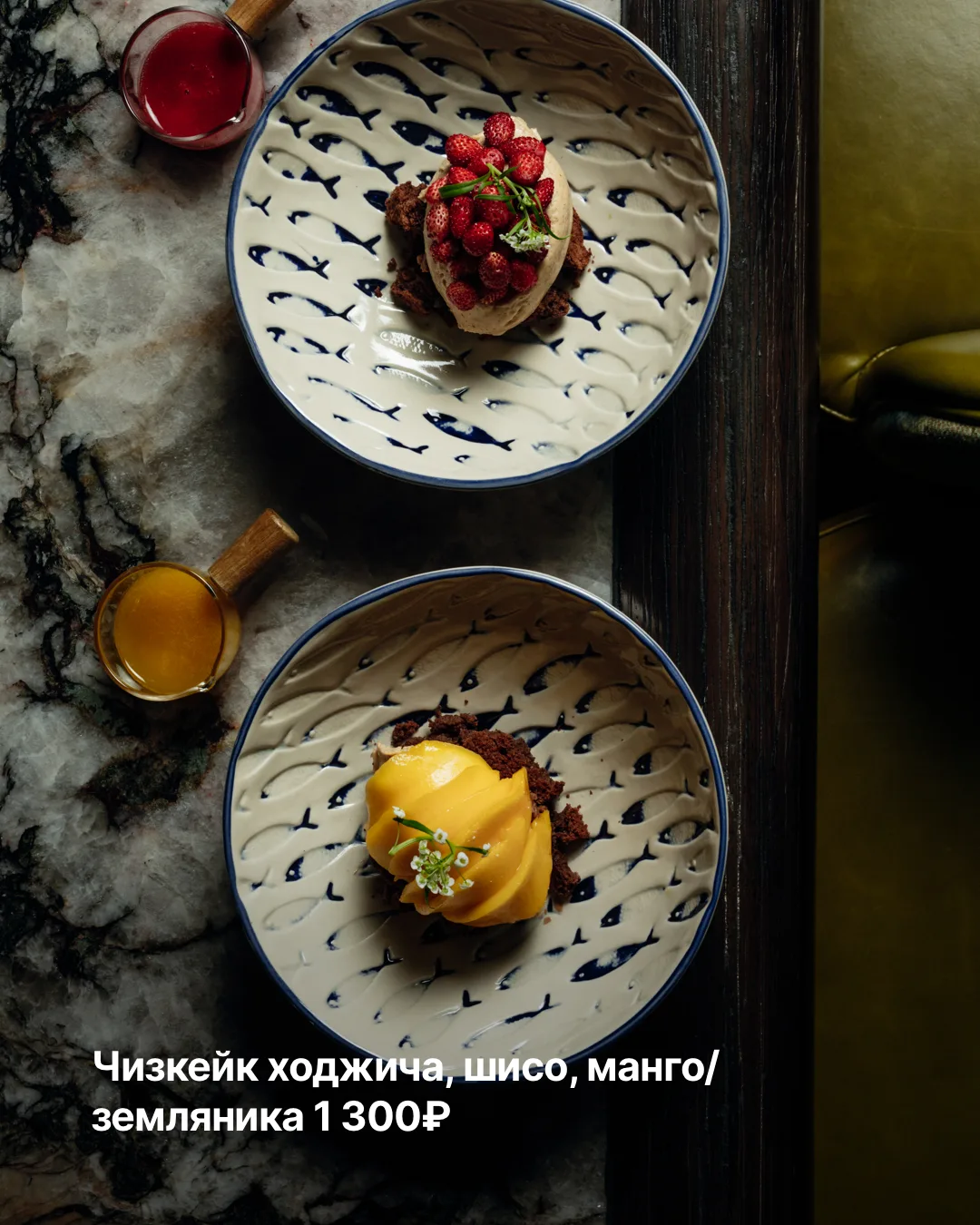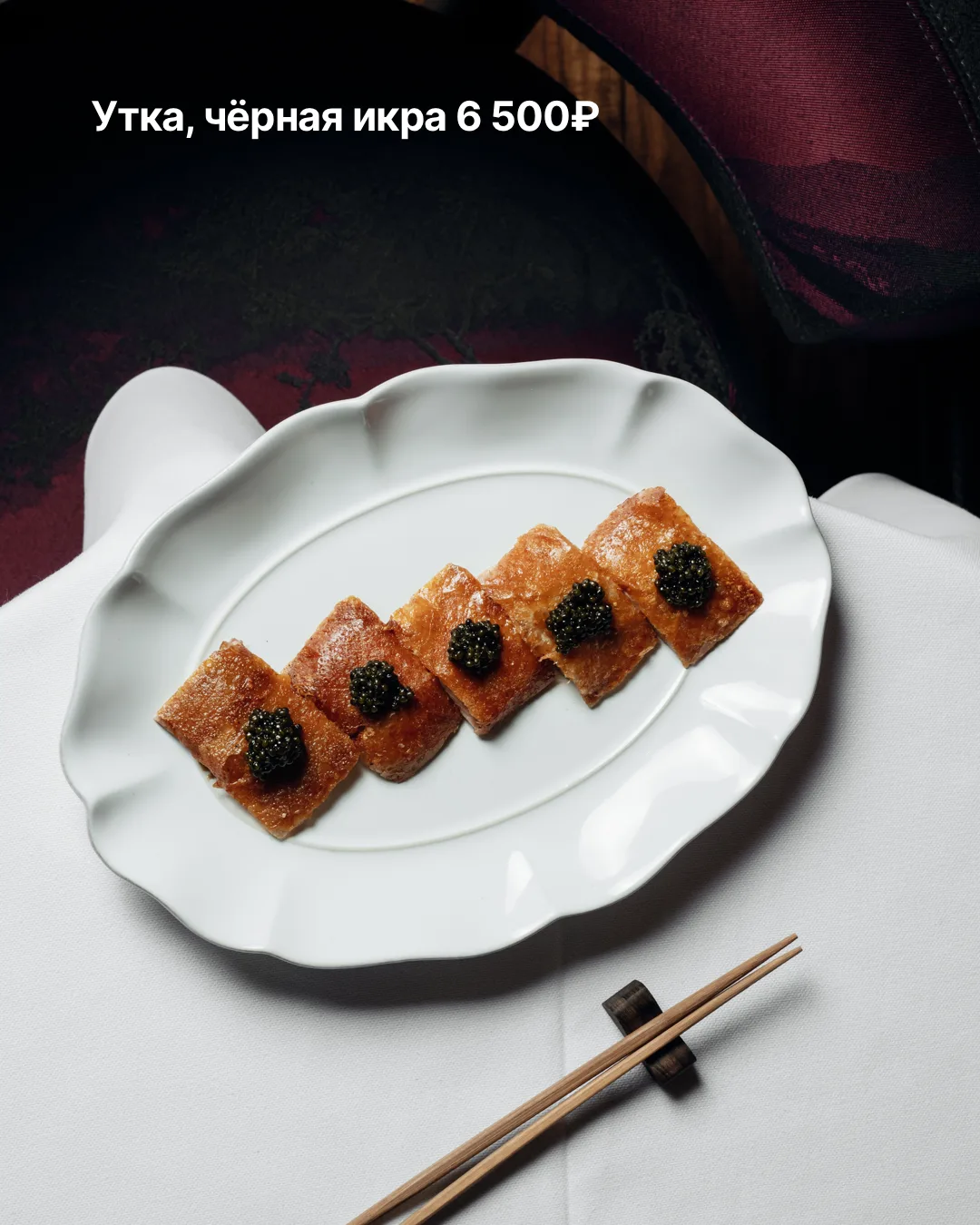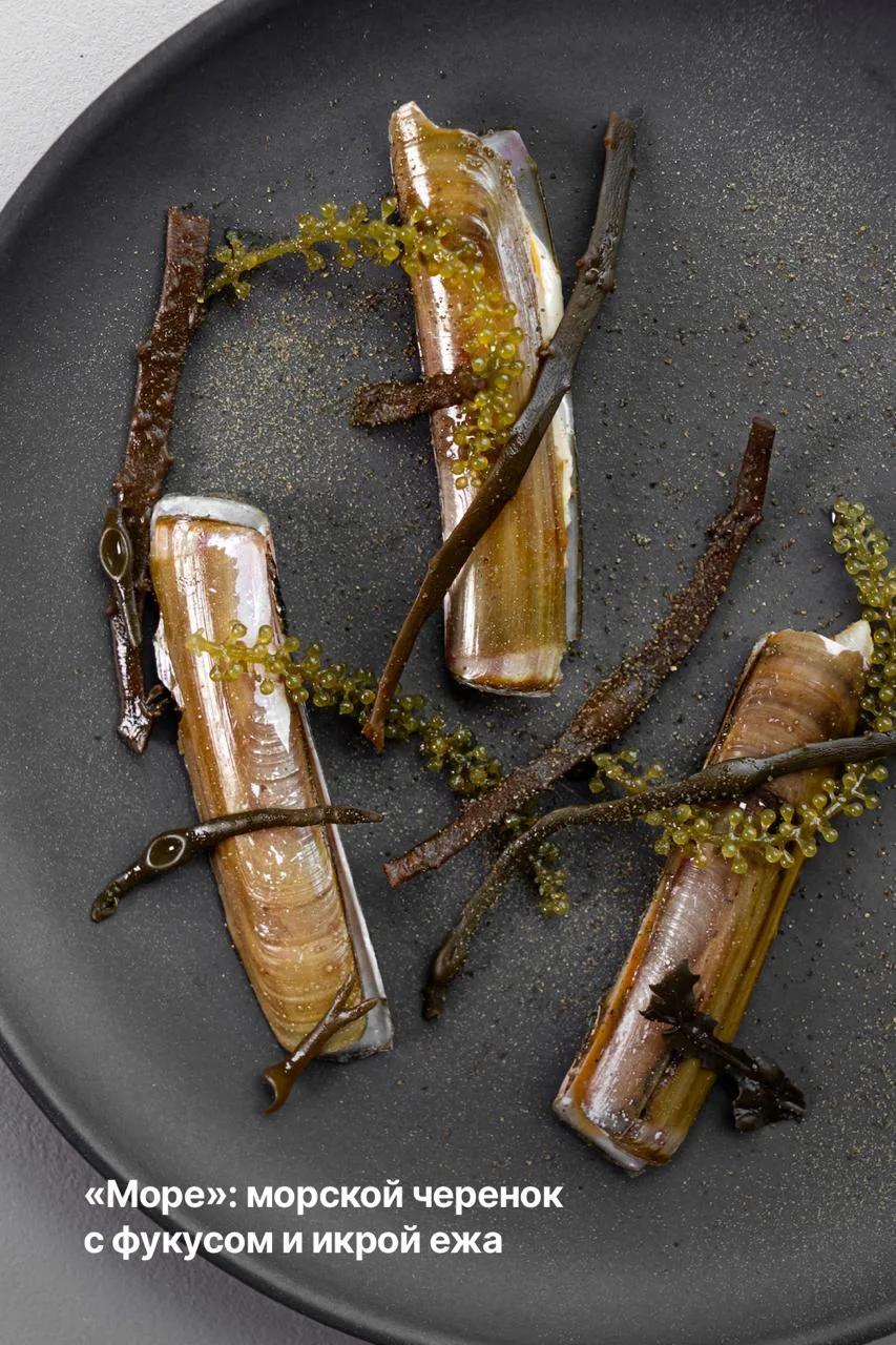 Китайское направление дополняют утка с чёрной икрой, пряная говядина с чёрным перцем и дикий сибас в чесночном соусе, а на десерт — новые позиции от шеф-кондитера Анны Лисивец.