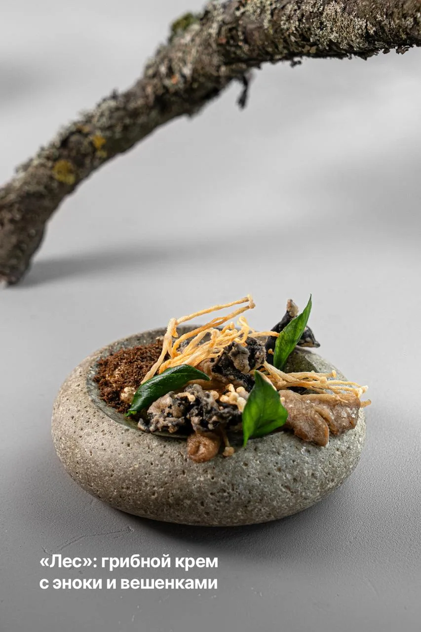 Недавно проект обновился. На смену общим лавкам пришла уютная рассадка, а под потолком теперь парят плетеные «гнезда» из Индонезии. Это бережный ресайкл и дань природе: лианы и мох остались на месте, только теперь — в сочетании с кухней от шефа Анатолия ЛевИзова.