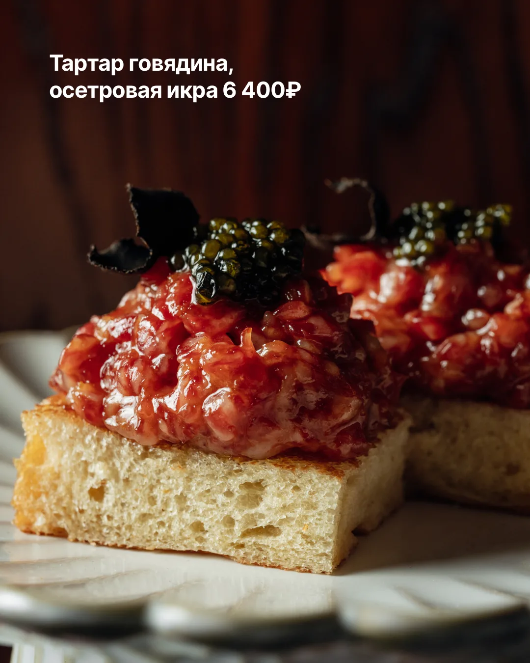 Наш гастрономический топ открывает тартар с костным мозгом 950₽ — идеальное сочетание. Дальше — тапас с уткой и муссом из пармезана 500₽. Хрустящие подушечки буквально взрываются вкусом.