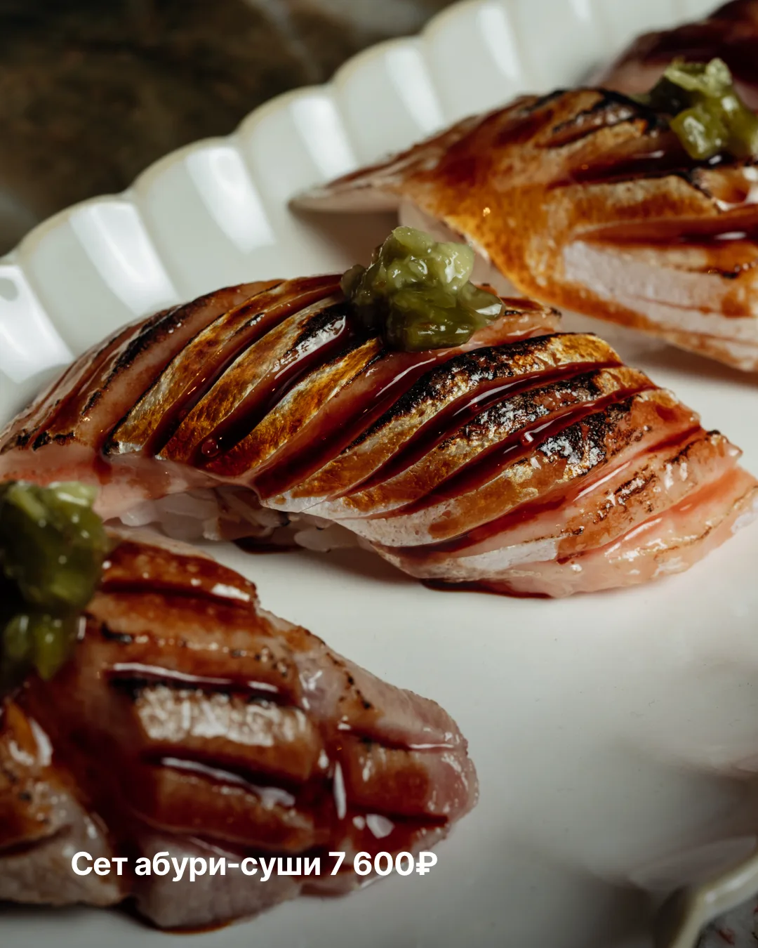 В меню появились новые блюда с вагю: чираши с икрой морского ежа, татаки с кимчи и шисо и тартар с чёрной икрой и трюфелем. Среди новинок также сет абури-суши с лососем, оторо, хамачи и вагю, сандо с вагю и чёрной икрой, щека хамачи на гриле и чёрная треска в мисо.