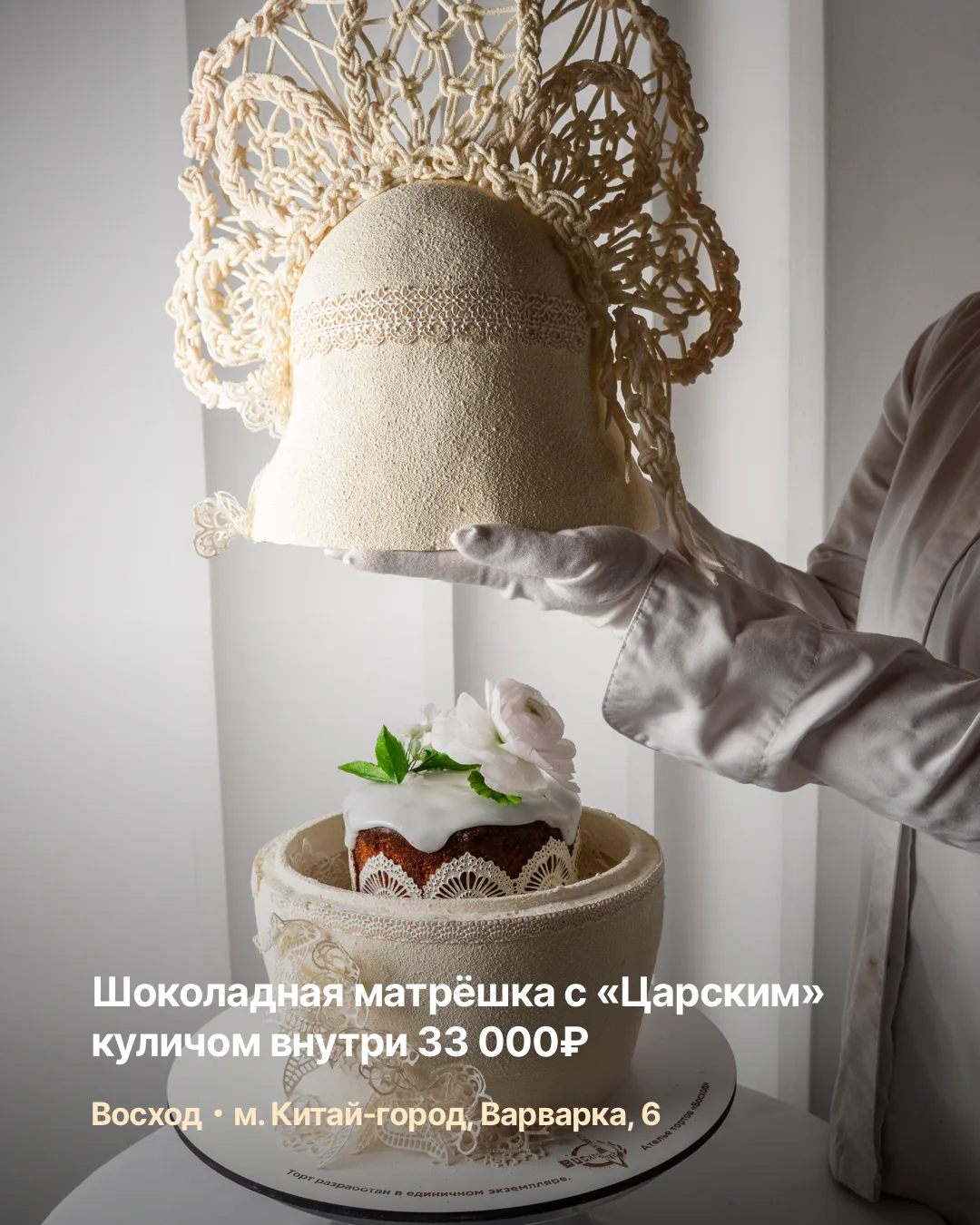 Пасха в Москве — это отдельный вид искусства. Собрали для вас 9 самых дорогих куличей сезона. В этой части: шоколадные матрешки, золотой декор, резные наличники и кокошники. Настоящая эстетика «а-ля рус» в исполнении лучших шеф-кондитеров.