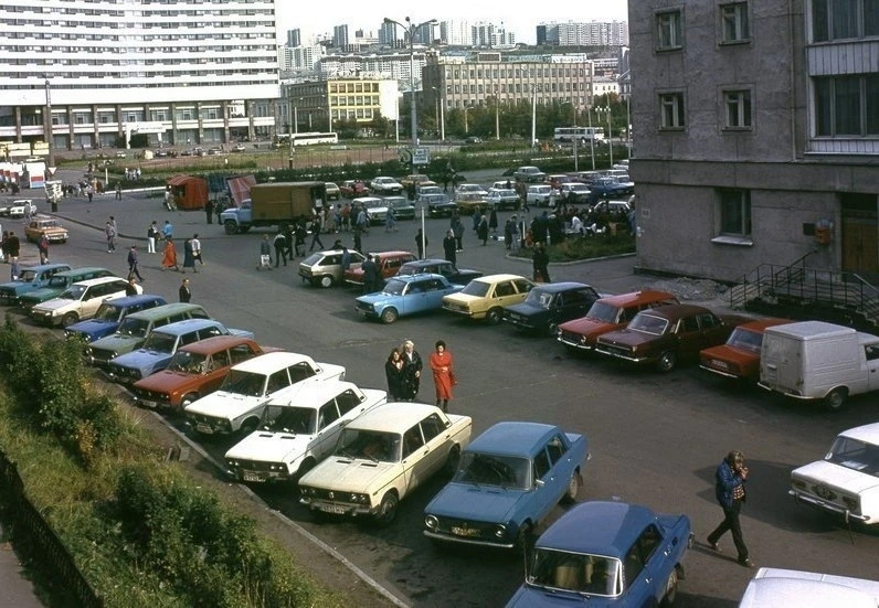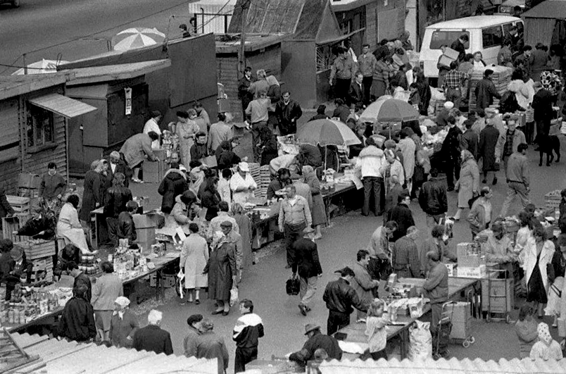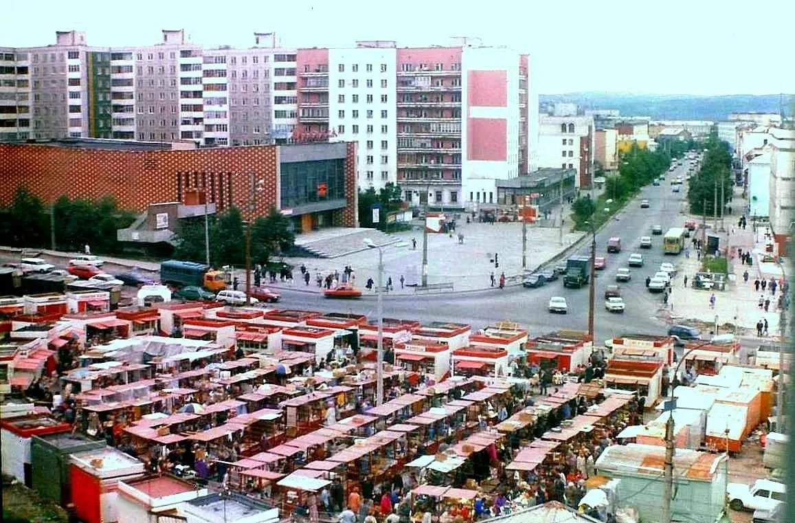 Фотография, сделанная Ю. Н. Чернопятовым, запечатлела рынок, который располагался на площади перед кинотеатром «Мурманск» в 1994 году. Источник фотографии — фонд «Мурманского областного краеведческого музея».